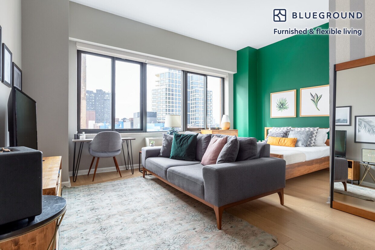 Discover the best of New York, with this studio apartment in Chelsea with views over the city. It’ll be easy to simply show up and start living in this furnished apartment with its fully equipped kitchen, living room, and our dedicated, on-the-ground support. (ID #NYC80) The advertised rate of $6,170/month is the lowest available price, based on a 12 month(s) stay with a move-in date of May 10, 2026. Rates vary depending on the duration of stay, season, and other parameters. For exact pricing and additional pricing components, please visit our website and enter your desired move-in and move-out dates. The rate is applicable when billed upfront; it can be higher if billed in multiple payments. Brokers are welcome to reach out. Were you looking for an unfurnished lease? Try Blueground instead and upgrade from unfurnished to furnished living: - Furnished at rates comparable to unfurnished - No setup or furniture costs - save thousands - Move-in ready - save time, just bring your suitcase Designed with you in mind Gorgeous furniture, fully equipped kitchen, smart TV, and a premium wireless speaker are just a few of the amenities you’ll find inside this studio apartment. Ideally located in New York, you’ll find a lot to love outside as well. When you’re ready to relax, you’ll be happy to discover every Blueground bedroom comes with superior quality mattresses, fully stocked linens, and cozy towels. We handle everything so you can simply show up and start living. This apartment also offers in-apartment laundry. Sleeping arrangements Queen Bed, 63in/160cm Amenities Building amenities unique to this studio apartment include an on-site: - Doorman - Dryer - Elevator - Washing machine - Pets allowed - Rooftop BBQ Arrival and ongoing support The entire apartment is yours to enjoy! Throughout your stay, you’ll have access to our Client Experience team through the Blueground App. You can schedule additional cleanings, submit maintenance requests, and view our neighborhood recommendations with just a few taps. We’ll share all details upon confirmation of your stay. Ideally Located This furnished apartment is located in Chelsea, one of the city’s trendiest neighborhoods. Considered an artistic and creative center, there are over 200 galleries to discover. Ranging from classical to experimental art, there is something for every taste. Take a stroll through the High Line park for a unique perspective and a breath of fresh air. What used to be a railroad, now provides stunning views of Manhattan’s architecture. This area is also known for its various fine dining options and hip nightlife. From Chelsea, JFK Airport is just 30 minutes away by car. Other things to note Building amenities may have an extra cost. This Blueground apartment has flexible lease options, allowing you to book it for one month, a year, or more. Pets are welcome, though weight limits and breed restrictions apply and may incur fees. Brokes CYOF. We take great pride in ensuring every photo displayed is shot in our own units with our actual furnishings. That said, we regularly refresh our decor and furniture arrangement, which may differ from what’s pictured. Also note - Other apartments in this building are undergoing renovations, and you may hear construction noise inside your apartment from time to time [SI]