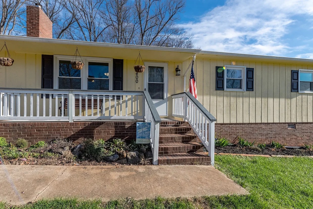 This charming home has been recently painted a sunny yellow which adds to its initial appeal along with the rocking chair front porch and new storm door! Once you step through the front door you are immediately welcomed into the home’s main living space. The great room possesses attractive wide plank laminate flooring, a cooling ceiling fan/light, and an impressive brick, wood burning fireplace. Adjacent to the great room is the generously sized kitchen and eat-in area which both have wide plank flooring and fresh wall paint. The eat-in kitchen is highlighted by newly painted cabinetry, attractive laminate countertops and pendant lighting, plus access to the spacious wooden deck that overlooks the large rear yard! The 0.58 acre offers a complete privacy fence and two storage sheds – giving you plenty of space to play, tinker and relax! This home offers three bedrooms, complete with new wall paint, plush carpeting, ceiling fans and ample closet space. There are two full bathrooms (one of which is the master) which boast a single sink vanity, shower/tub combination and nice, new flooring – one possessing tile and the other laminate tile. Everything is spotless and waiting for you! We are certain this home will not last long