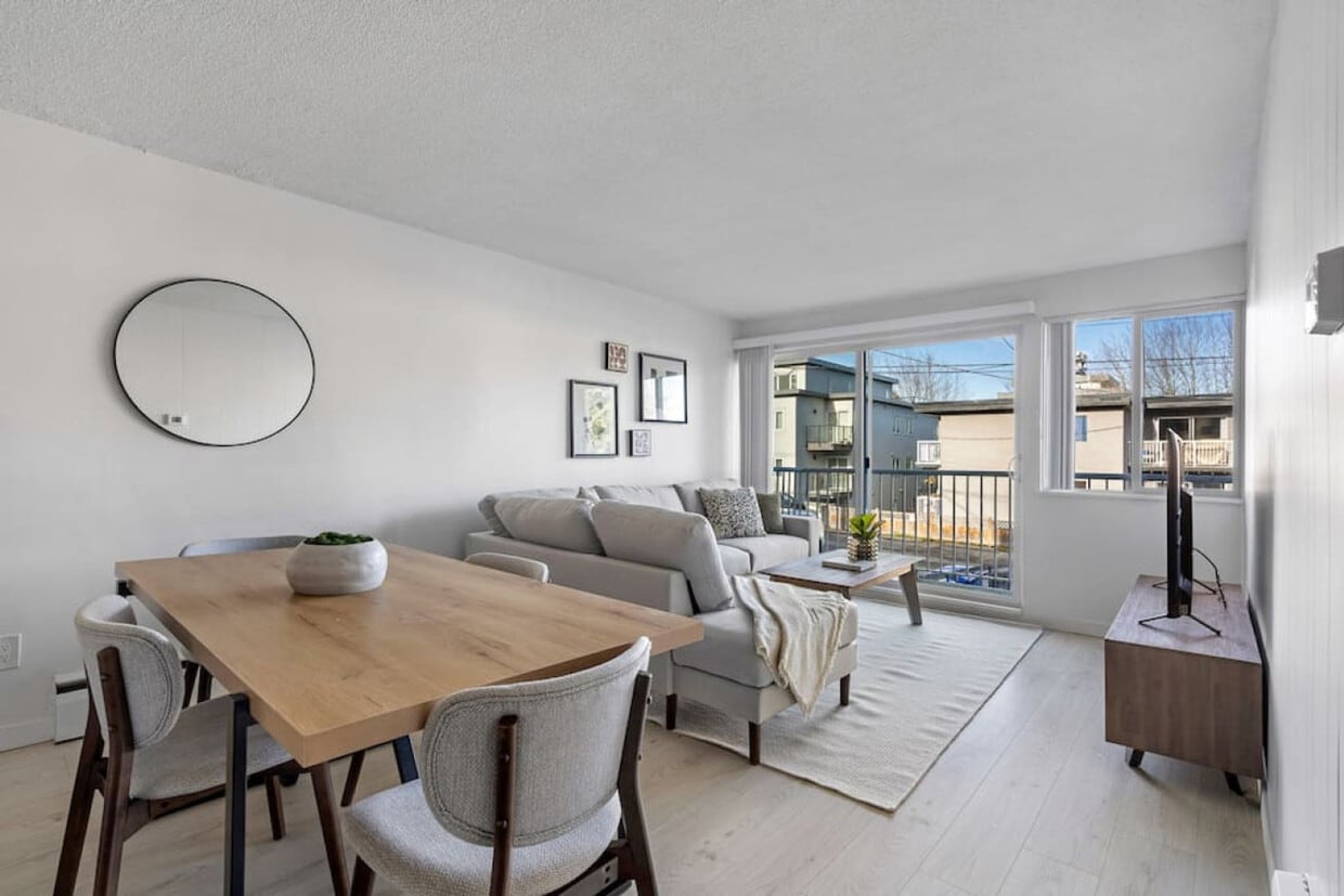 The advertised rate of C$3,272/month is the lowest available price, based on a 30 day(s) stay with a move-in date of October 2, 2026. Rates vary depending on the duration of stay, season, and other parameters. For exact pricing and additional pricing components, please visit our website and enter your desired move-in and move-out dates. The rate is applicable when billed upfront; it can be higher if billed in multiple payments. Step into this newly furnished gem of a condo in Vancouver's trendy and exciting East Side. Situated only a few blocks from Main Street, this condo offers nearby attractions, restaurants, venues, and transit that will ensure you have a memorable and enjoyable stay. The condo itself is freshly furnished and offers all essentials you could need to feel right at home, from a fully stocked kitchen to fresh, comfortable linens. You will have access to a parking spot and in-suite laundry. The space within this home is characterized by an open-concept layout, as the living room melds seamlessly with the living room area. Ample light enters the home with large windows and a patio that offers fresh air. The home is equipped with a Smart TV and comfortable furniture within the living room, and the kitchen with an island is fully stocked for you to enjoy home-cooked meals at your leisure. The bedroom space offers a queen bed, fresh linens, and a large closet for you to store your belongings. The bathroom is fully stocked as well, with a bath/shower combo. Main Street in East Vancouver is the epitome of trendy. There are ample shops, antique stores, thrift shops, and renowned restaurants. The area carries a youthful demeanor and pleasant atmosphere that induces excitement, as there is always something new to discover in East Vancouver. Nightlife is bustling in the district, with frequent live music shows that range from all genres. Bars and breweries are a standout point, as craft beers are a staple of this iconic Vancouver district. Main Street and 12th Ave have frequent bus stops that run north and south. These public transit systems are simple to use and take full advantage of Vancouver's near-perfect infrastructure. Rideshare services such as Uber and Lyft are abundant while walking is a capable method of getting around and seeing the brilliant vibe that East Vancouver has on display. The condo is 1 block from Main St., 2 blocks from the nearest grocery stores and pharmacy, 1 block to transit, and 15 minutes to YVR. No parties, events, or large gatherings are allowed. No smoking in or on the property. [SI]