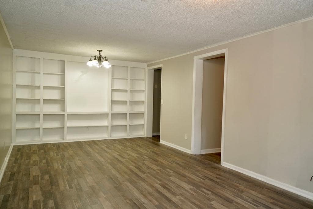 Reconditioned 2 bed 1 bath apartment home with beautiful built in bookcase. Enjoy the cozy kitchen and wooded location.