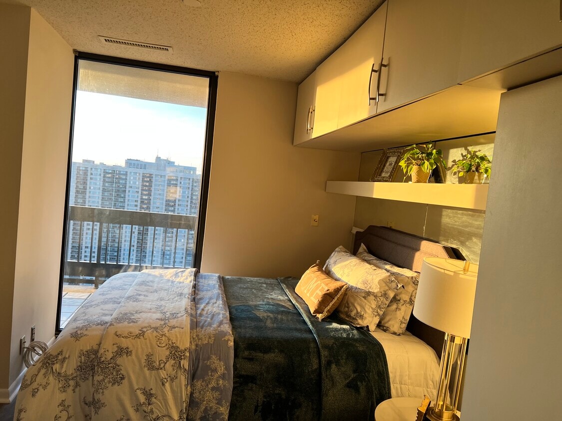 Come see your new home with a penthouse view! Beautiful 1 bed 1 bath with assigned covered parking. Fully equipped gym, steam and sauna rooms. 24 x7 front desk and security. Close proximity to DC, Shirlington, Alexandria, Tyson’s, 395 N, eating, shopping, play and work for a lesser price than all other apts in the area. Owner very responsive. Apt complex and unit well maintained. No pets and no smoking. Assigned garage covered space New AC/ Heat and new washer/dryer. New suite of Samsung appliances. Electric around $50 or less a month. Must see - available February 2026 $1850 monthly rent plus security deposit Must have decent credit