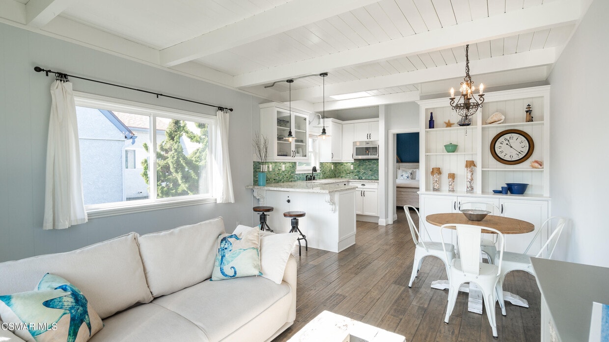 Live where others vacation! This fully furnished beachside retreat offers effortless coastal living just steps from the sand.Located in sought after Oxnard Shores, this thoughtfully designed 1-bedroom, 1-bath retreat offers 537 sq. ft. of warm, modern comfort, ideal for seeking a peaceful full-time residence by the ocean.Inside, you'll find a light-filled living area with hardwood floors, a cozy dining space, and a well-equipped kitchen--all fully furnished with clean, coastal-inspired touches. Just unpack your bags and settle in.Enjoy subtle ocean sounds from your home, and take in the peek-a-boo view of the Pacific from the shared rooftop deck. Perfect for morning coffee or evening unwinding.Extras include a private garage with in-unit washer/dryer, plus plenty of storage space.This home is available for long-term rental and comes fully furnished. Ideal for someone ready to trade chaos for calm and embrace year-round beachside serenity.