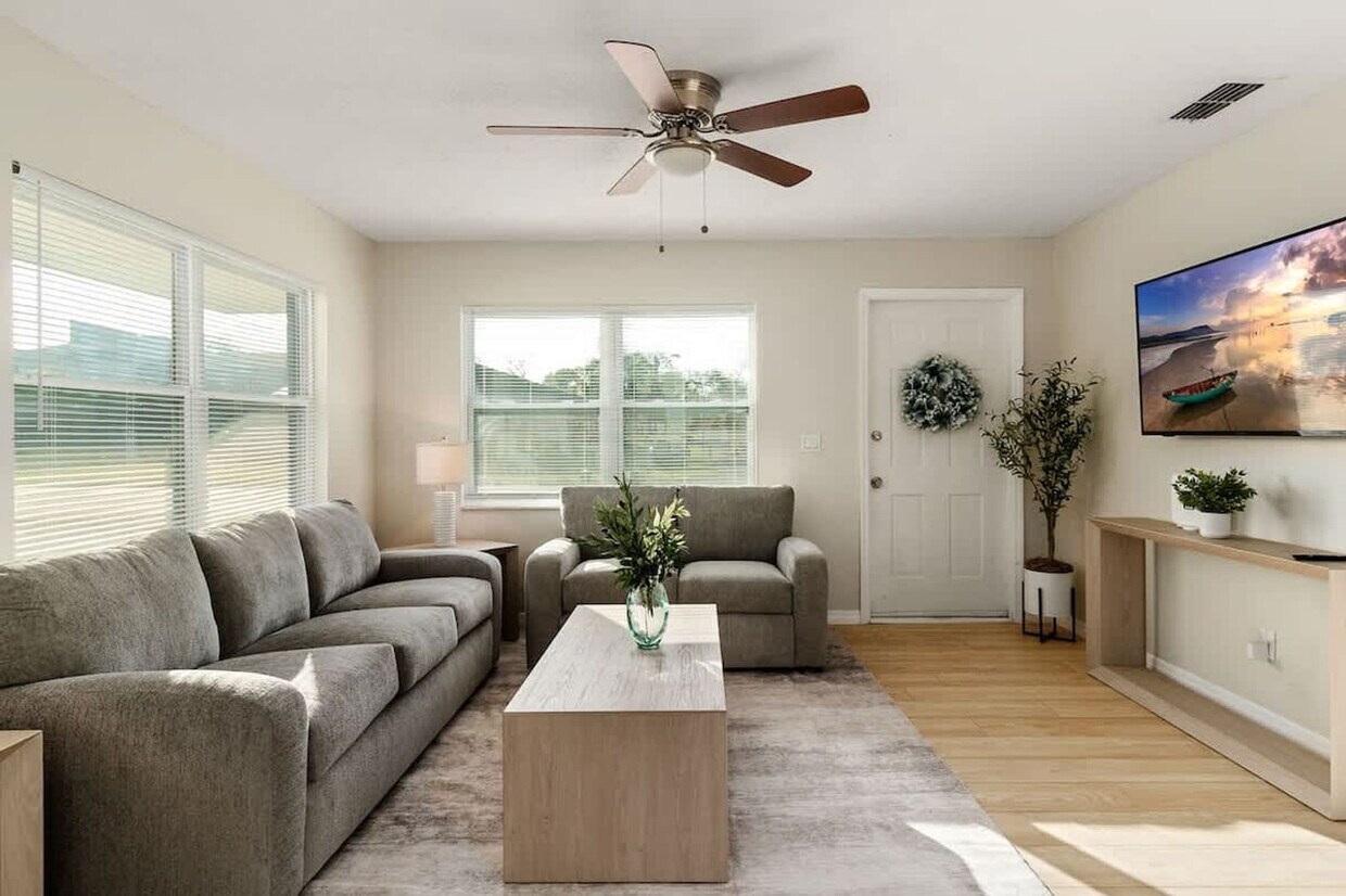 The advertised rate of $3,718/month is the lowest available price, based on a 30 day(s) stay with a move-in date of August 29, 2026. Rates vary depending on the duration of stay, season, and other parameters. For exact pricing and additional pricing components, please visit our website and enter your desired move-in and move-out dates. The rate is applicable when billed upfront; it can be higher if billed in multiple payments. Escape the Tampa traffic while staying close to the city in this modern and charming Zephyrhills duplex! Perfect for families, friends, or couples, this fully furnished 2-bedroom, 1-bathroom home offers a comfortable and convenient base for your Florida getaway. Feel at home in this beautifully decorated space. The living room offers comfortable seating with a 55-inch flat-screen smart TV. The fully equipped kitchen includes a stove, refrigerator, microwave, coffee maker, cookware, and all the essentials for cooking at home. A dining area is available for meals together. High-speed Wi-Fi is available throughout, and a washer and dryer are located outside the unit for private use. You have the option to rent the other side of the duplex to create a 4-bedroom, 4-bathroom home. This home is conveniently located near several attractions, including Sky Dive City (9 minutes), The Great Catch (6 minutes), the Museum of Military History (5 minutes), Pioneer Florida Museum (24 minutes), Highland Axe Throwing (35 minutes), and Tampa International Airport (20 minutes by car). A starter pack of amenities is provided, including a fresh paper towel roll, a new roll of toilet paper per bathroom, hand soap in each bathroom and kitchen, a new sponge, dish soap and dishwasher tabs, a set of travel-sized shampoo, conditioner, and body wash per bathroom, trash bags, and laundry pods. Registration Number: 61--4 [SI]