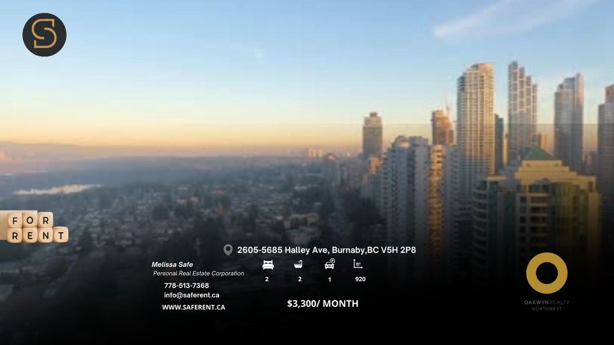 Price: $2,300 Bedrooms: 1 Bathrooms: 1 Interior Sq. Ft.: 594 Exterior Sq. Ft.:70 Furnished: No Parking: Yes Storage Locker: Yes Utilities: No Description Welcome to this brand-new, spacious 1-bedroom, 1-bath residence perched on the 17th floor of the prestigious Artesia. Enjoy breathtaking panoramic views of the city skyline and surrounding mountains through expansive windows that fill the home with natural light. The high-end kitchen is thoughtfully designed for both everyday living and entertaining, making it the perfect space to host memorable gatherings. Situated in the highly sought-after Metrotown / Central Park South neighbourhood, this home offers unmatched convenience. Step outside to Metrotown Mall, Central Park, Patterson SkyTrain Station, trendy cafés, diverse restaurants, and boutique shops—all just moments away. Experience the ideal balance of vibrant urban living and serene green space in one of Burnaby’s most desirable locations. ****FREE JANUARY RENT***** Walk Score: 94/100 — Walker’s Paradise NO MOVE IN FEE Amenities: 24/7 concierge & secure lobby • Fully equipped fitness centre • Yoga/stretch studio • Exclusive Skylounge with lounge seating, BBQ area, and panoramic city & mountain views — perfect for gatherings or quiet evenings above it all • Resident social lounge & guest seating areas • Outdoor terrace/green space • Bike storage **Marketing Pictures**