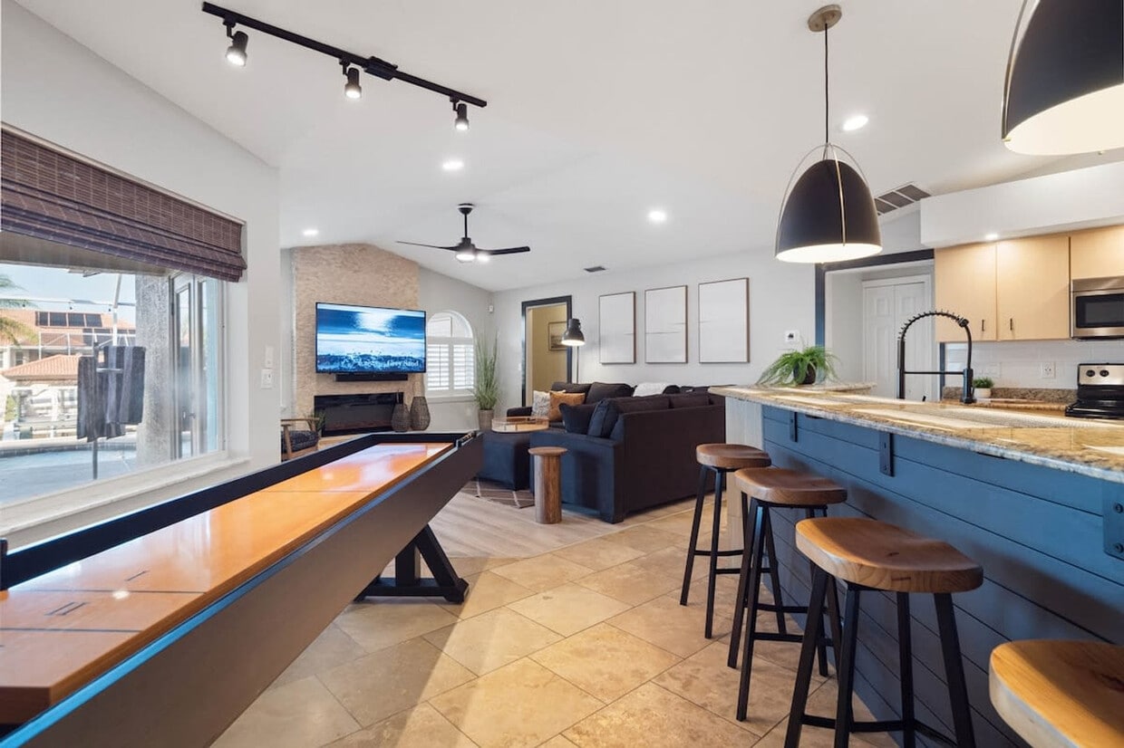 The advertised rate of $6,181/month is the lowest available price, based on a 30 day(s) stay with a move-in date of August 30, 2026. Rates vary depending on the duration of stay, season, and other parameters. For exact pricing and additional pricing components, please visit our website and enter your desired move-in and move-out dates. The rate is applicable when billed upfront; it can be higher if billed in multiple payments. Welcome to Casa Canal, a stunning newly renovated vacation rental with an in-ground pool and spa, situated on the picturesque waterfront. This 4-bedroom, 3-bathroom property offers a perfect blend of luxury, comfort, and recreational amenities, ensuring an unforgettable stay for you and your loved ones. With its convenient location, you can easily visit St. Augustine, Daytona, Jacksonville, and Orlando. The spacious dining room accommodates 10 people, and the luxurious master suite features a king-size bed and a work-from-home station. The large open kitchen is equipped with stainless steel appliances and granite countertops, while the heated in-ground pool and spa with cascading waterfalls add to the allure. The property also includes a boat dock with a lift, kayaks, and bikes for your enjoyment. As you step inside, you'll be greeted by a beautifully designed interior that combines modern elegance with coastal charm. The formal living room features a comfortable couch and a large internet TV, perfect for unwinding and enjoying your favorite shows. The master suite offers a luxurious king-size bed and a work-from-home station, while three additional guest bedrooms provide ample accommodation. One guest bedroom includes a queen-size bed, the third bedroom has a large bunk bed with a full-size lower and twin upper, and the fourth bedroom comes with its own bathroom, also serving as a pool bath. The interior boasts a spacious dining area accommodating 10 people, a large open kitchen with stainless steel appliances, granite countertops, and a bar seating area. An adjacent family room with a spacious sectional and large flat-screen TV, along with a cozy electric fireplace, creates an inviting atmosphere. Upgrade to have the pool heated for an additional $287 weekly rate. A pet fee is $100 per pet per stay. The pool heater is available for $50 per day or $287 per week or $200 weekly for multi-week stays. If you plan to bring a trailer or RV, secure off-site parking is available approximately 7-10 miles from the property for $25 per day per unit. If you’d like to reserve a space, please let us know prior to your arrival so we can add it to your reservation and provide you with the access code. Casa Canal offers convenient access to the nearby European village, where you can explore a variety of restaurants, eateries, and entertainment options. Within half a mile from the property, you'll find miles of walking and biking trails, perfect for outdoor enthusiasts. Beautiful beaches are also within reach, offering free parking, bathroom facilities, and showers for your convenience. With its close proximity to St. Augustine, Daytona, Jacksonville, and Orlando, Casa Canal serves as an ideal base for exploring the surrounding areas. Whether you're seeking relaxation by the pool, adventure on the water, or exploring the vibrant nearby cities, this vacation rental promises an unforgettable experience. Quiet hours are between 22:00 and 7:00. Due to city regulations, trailers and RVs are not permitted to be parked at any city properties, and parking on the lawn or city swales is strictly prohibited at all times. All vehicles must be parked in the driveway only. If you plan to bring a trailer or RV, secure off-site parking is available approximately 7-10 miles from the property for $25 per day. If you’d like to reserve a space, please let us know prior to your arrival so we can add it to your reservation and provide you with the access code. The master suite includes a work-from-home station, providing a comfortable and efficient space for remote work. [SI]