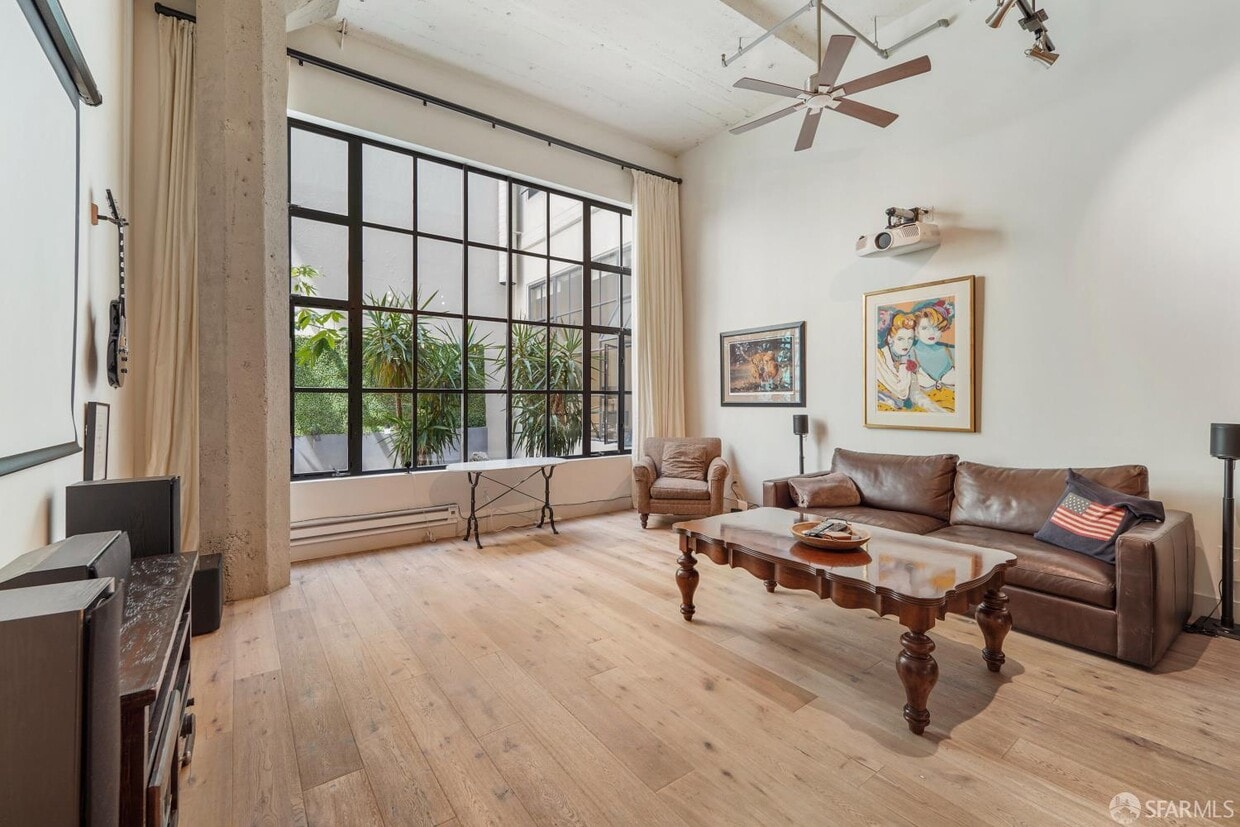 Experience stylish city living in this fully-furnished live/work loft in the historic Heublein Building, located in the vibrant South Beach neighborhood. This spacious, two-level, residence blends modern comfort with classic loft character, featuring soaring ceilings, expansive warehouse-style windows, and an open floor plan filled with natural light. The main floor living area offers a welcoming space to relax or entertain, with warm wood flooring, contemporary furnishings, and dramatic floor-to-ceiling industrial windows. The open kitchen is equipped with stainless steel appliances, generous cabinetry, and a breakfast bar with seatingperfect for casual dining or working from home. The full-bathroom with walk-in shower, and laundry closet completes this level. Upstairs, the lofted bedroom provides a private retreat with space for both sleeping and a home office setup. The thoughtful layout maximizes both openness and functionality while maintaining a comfortable separation between living and sleeping areas. The attached half-bath with extra closets adds extra convenience to the loft space. Situated just minutes from the Embarcadero, Oracle Park, and the dining and tech hubs of SoMa, this location offers easy access to transit, waterfront walks, restaurants, and downtown offices. One car garage parking and storage included. MLS # 426112281