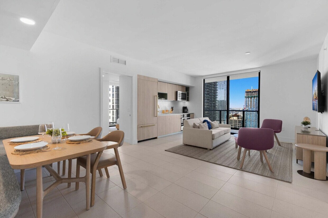 The advertised rate of $5,106/month is the lowest available price, based on a 30 day(s) stay with a move-in date of August 23, 2026. Rates vary depending on the duration of stay, season, and other parameters. For exact pricing and additional pricing components, please visit our website and enter your desired move-in and move-out dates. The rate is applicable when billed upfront; it can be higher if billed in multiple payments. Welcome to your chic downtown retreat! Feel at home in this stylish 2-bedroom apartment. This modern apartment is designed for both comfort and convenience. It features a full kitchen, ideal for preparing meals, and a full bathroom with all the essentials. Additional amenities include a washer and dryer inside the unit. Enjoy the amazing pool and well-equipped gym. Stay connected with complimentary Wi-Fi. Enjoy the convenience of receiving packages during your stay for $5 per package per day. Families can enjoy added convenience with a complimentary pack 'n play provided upon request. Parking is not included; however, guests have the freedom to choose the option that best fits their needs. This is a pet-friendly property with a 30 lbs restriction (doesn’t apply to ESA). The pet fee is $100 per dog. Downtown Miami is a vibrant urban area known for its dynamic cultural scene, modern architecture, and bustling nightlife. It’s a hub of business and entertainment, featuring attractions like the Miami Art Museum, Bayfront Park, and the American Airlines Arena. Getting around Downtown Miami is convenient with several options, including the Miami Metromover, Metrobus, Metrorail, taxis, rideshares, and bike rentals. Walking is feasible in many parts due to the area's compact layout and pedestrian-friendly streets. There may be an increase in daytime noise levels due to nearby construction. Swimming is at your own risk, and there is no lifeguard on duty. Children must be supervised by a responsible adult at all times. Please keep all doors closed and the air conditioning on at all times to help prevent condensation and property damage. [SI]
