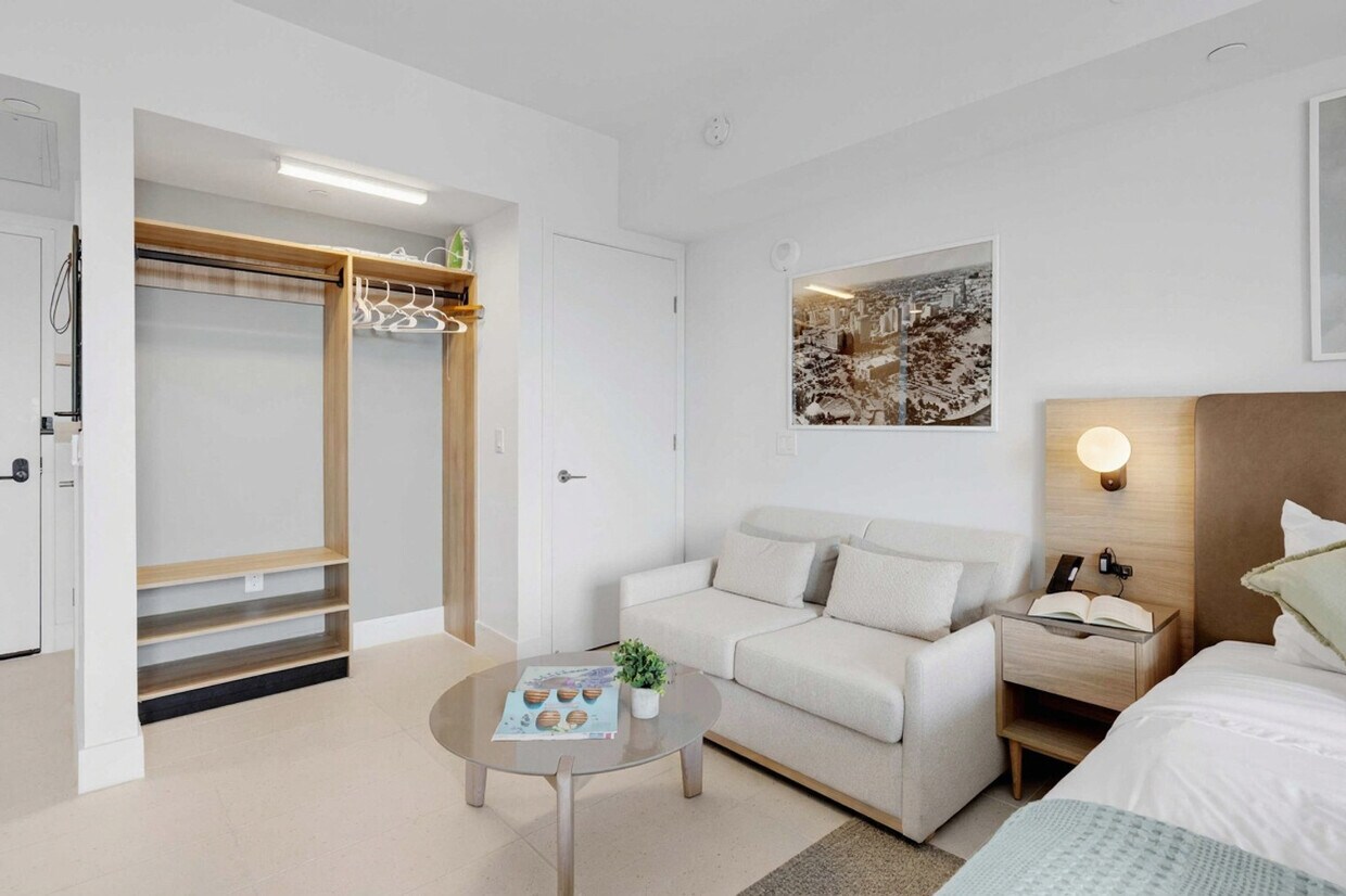 The advertised rate of $3,040/month is the lowest available price, based on a 30 day(s) stay with a move-in date of August 3, 2026. Rates vary depending on the duration of stay, season, and other parameters. For exact pricing and additional pricing components, please visit our website and enter your desired move-in and move-out dates. The rate is applicable when billed upfront; it can be higher if billed in multiple payments. Feel at home in this chic studio apartment in downtown Miami. This stylish apartment features a luxurious king-size bed. This modern studio apartment is designed for both comfort and convenience. The studio boasts a plush king-size bed and a TV for your relaxation. Enjoy the convenience of a full kitchen, ideal for preparing meals, and a full bathroom with all the essentials. Additional amenities include a washer and dryer inside the unit. Enjoy the amazing pool and well-equipped gym. Package service is available for $5 per package per day. Families can enjoy added convenience with a complimentary pack ’n play provided upon request. Pets are welcome with a fee of $100 per dog, with a 30 lbs restriction (doesn’t apply to ESA). Parking is not included. Downtown Miami is a vibrant urban area known for its dynamic cultural scene, modern architecture, and bustling nightlife. It’s a hub of business and entertainment, featuring attractions like the Miami Art Museum and Bayfront Park. Getting around Downtown Miami is convenient with several options, including the Miami Metromover, Metrobus, Metrorail services, taxis, rideshares like Uber and Lyft, and bike rentals. There may be an increase in daytime noise levels due to nearby construction. Swimming is at your own risk, and there is no lifeguard on duty. Children must be supervised by a responsible adult at all times. Please keep all doors closed and the air conditioning on at all times to help prevent condensation and property damage. ?? Package ServiceEnjoy the convenience of receiving packages during your stay. The resort can securely store your deliveries for just $5 per package per day. Simply ensure the building address and your full name are included on the shipment for smooth handling.?? Complimentary Pack ’n Play available upon requestFamilies can enjoy added convenience with a free Pack ’n Play provided upon request, making travel with little ones easier and more comfortable.?? Parking optionsParking is not included in the listing; however guests have the freedom to choose the option that best fits their needs during their stay.?? Stay Sol is the exclusive operator of this property??Please note: There may be an increased in daytime noise levels due to nearby construction. [SI]