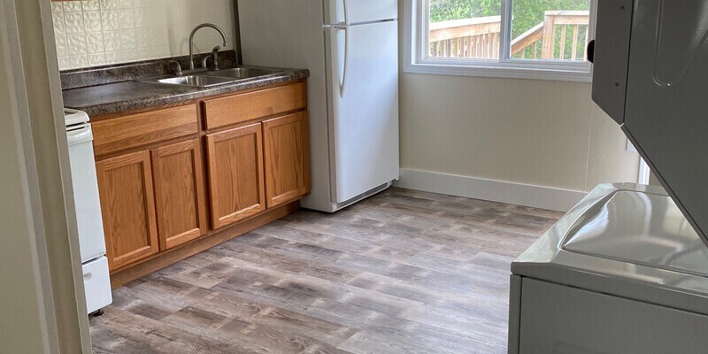One bedroom, one bathroom apartment located in a quiet duplex. Nice sized (10x10) deck off of the kitchen and paved sidewalk leading from the front door to the parking lot. This unit comes with a stacked washer and dryer, new carpet and vinyl plank flooring, stove and refrigerator.In order to qualify you must:Have at least $1800.00/month in income.Provide three months of recent check stubs.Have no evictions on your record.