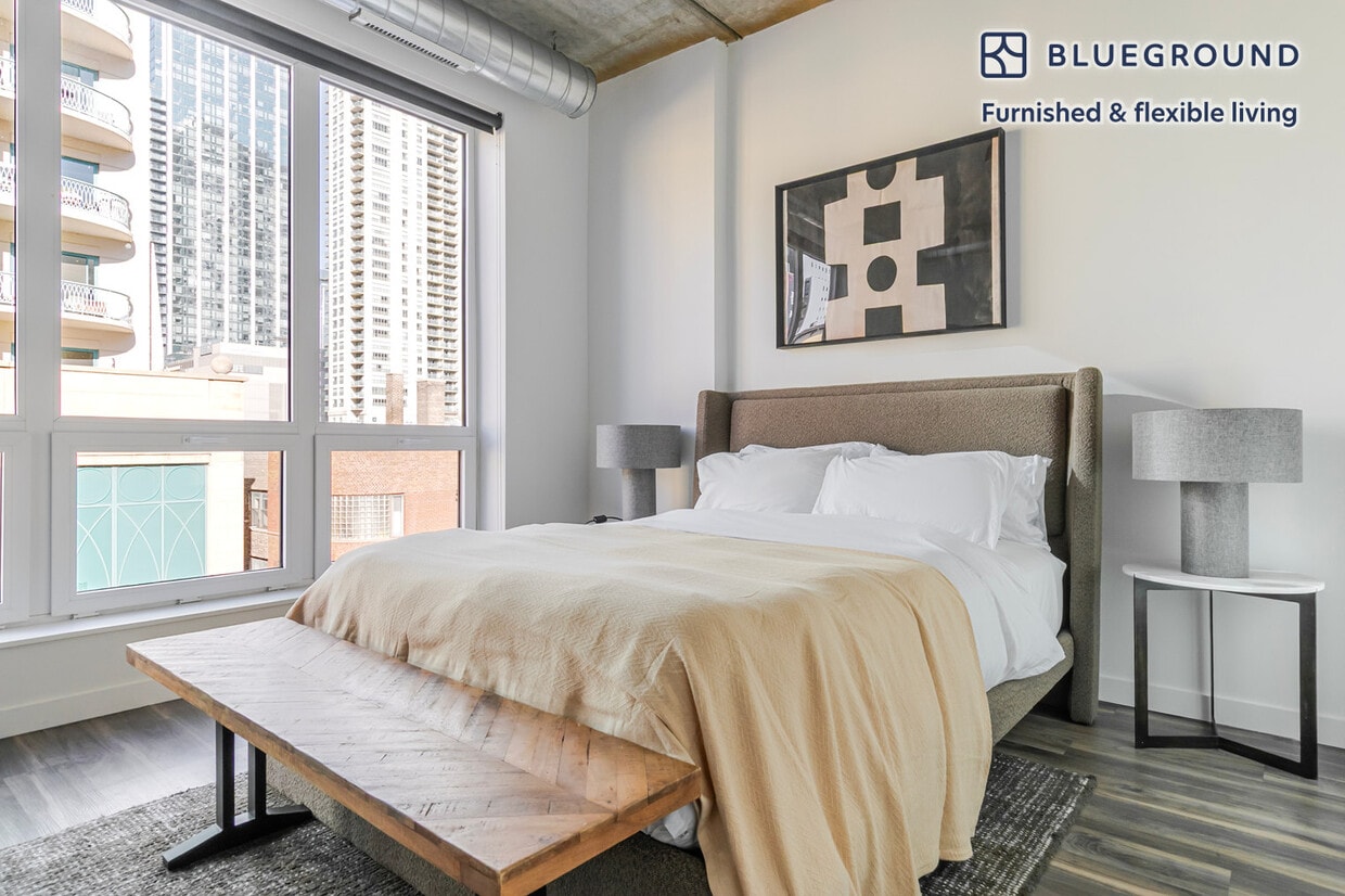 Show up and start living from day one in Chicago with this beautiful studio Blueground apartment. You’ll love coming home to this thoughtfully furnished, beautifully designed, and fully equipped Near North Side home. (ID #CHI1406) The advertised rate of $1,980/month is the lowest available price, based on a 1 month(s) and 3 day(s) stay with a move-in date of March 16, 2026. If you’re looking for a 1-year stay, the rate is $2,240/month. Rates vary depending on the duration of stay, season, and other parameters. For exact pricing and additional pricing components, please visit our website and enter your desired move-in and move-out dates. The rate is applicable when billed upfront; it can be higher if billed in multiple payments. Brokers are welcome to reach out. Were you looking for an unfurnished lease? Try Blueground instead and upgrade from unfurnished to furnished living: - Furnished at rates comparable to unfurnished - No setup or furniture costs - save thousands - Move-in ready - save time, just bring your suitcase Designed with you in mind Gorgeous furniture, fully equipped kitchen, smart TV, and a premium wireless speaker are just a few of the amenities you’ll find inside this studio apartment. Ideally located in Chicago, you’ll find a lot to love outside as well. When you’re ready to relax, you’ll be happy to discover every Blueground bedroom comes with superior quality mattresses, fully stocked linens, and cozy towels. We handle everything so you can simply show up and start living. This apartment also offers in-apartment laundry. Sleeping arrangements Queen Bed, 63in/160cm Amenities Building amenities unique to this studio apartment include an on-site: - Dryer - Elevator - Washing machine Arrival and ongoing support The entire apartment is yours to enjoy! Throughout your stay, you’ll have access to our Client Experience team through the Blueground App. You can schedule additional cleanings, submit maintenance requests, and view our neighborhood recommendations with just a few taps. We’ll share all details upon confirmation of your stay. Ideally Located This furnished apartment is located in Chicago's Near North Side neighborhood. Part of the storied Miracle Mile, this thriving neighborhood set on the shore of Lake Michigan is home to some of the city's most notable skyscrapers. The Near North Side has a fabulous dining scene, with everything from Chicago-style pizza to casual pubs to five-star restaurants. Neighborhood highlights include the Museum of Contemporary Art and 360 Chicago, a skyscraper with an observation deck. There's also Navy Pier, a lakefront park with casual dining, dinner cruises and carnival rides. The Near North Side is served by the CTA's Brown, Red and Purple Lines, as well as several bus routes. Other things to note Building amenities may have an extra cost. This Blueground apartment has flexible lease options, allowing you to book it for one month, a year, or more. We take great pride in ensuring every photo displayed is shot in our own units with our actual furnishings. That said, we regularly refresh our decor and furniture arrangement, which may differ from what’s pictured. [SI]