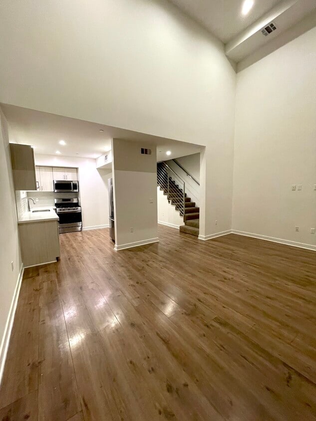 Available for April Move in- Currently occupied, accepting applications now. Showings by appointment only. This modern 3 bed, 3.5 bath, 3 story townhome is a great combination of private space with tons of natural light, your own large private patio and location location location in Hollywood. Situated in the back of a small, quiet 5 unit building, you get tons of natural light from 20' floor to ceiling windows with custom drapes looking out on your own private patio. Each one of these units is perfectly situated to explore Hollywood living, share the space with flat mates or create your own private work from home sanctuary. This unit is currently occupied, but do not wait, to apply and schedule a showing. Enter to find a beautiful ceasarstone quartz kitchen with stainless steel appliances and convenient half bath and light filled common room with floor to ceiling windows, looking out onto your private outdoor space. Up the stairs to the bedroom quarters you'll find each of the 3 bedrooms is nicely sized, some with balconies and each has it's own beautiful en suite ceramic tile bathroom. Perfect to share the home with flat mates, a home office or family, each will have their own completely private personal space. Situated in creative Hollywood near Fountain and Vine, in walking distance to gyms, grocery stores, nightlife, Thai town, production spaces, Netflix campuses and Hollywood/Vine metro station. Note: Minimum credit score of 700 required for application. Home detaills: 1800 sq feet. 3bed 3.5 bath - First floor half bath 20' living room windows with custom drapes. Central AC and Heat Security Alarm and intercom In Unit Stacking Washer and Dryer Lots of closet space Gated parking (2 spots, tandem) and bike racks Pet ok with deposit Private outdoor space