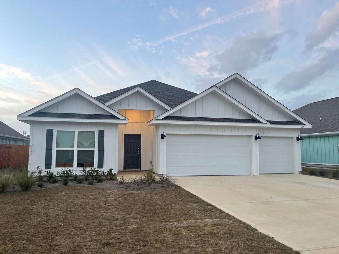 Open & Split floor plan, 4 bedrooms, 3 bathrooms with a covered patio, spacious back yard & 3 car garage with a Community Pool.The home features a large breakfast nook & separate dining area, a very comfortable open design for easy entertaining. Granite counter tops in the kitchen & baths, all stainless-steel appliances, smooth top range, large island bar & a corner pantry. Luxury vinyl in all areas except bedrooms. Bedroom 1 has a large walk-in closet & an adjoining bath that has a double granite vanity, garden tub & a separate shower. Forest Bay Estates has Underground utilities located in a quiet, natural setting with nearby shopping centers, restaurants & boutiques. A Rated Schools & White sandy beaches of Pensacola & Navarre just minutes away.
