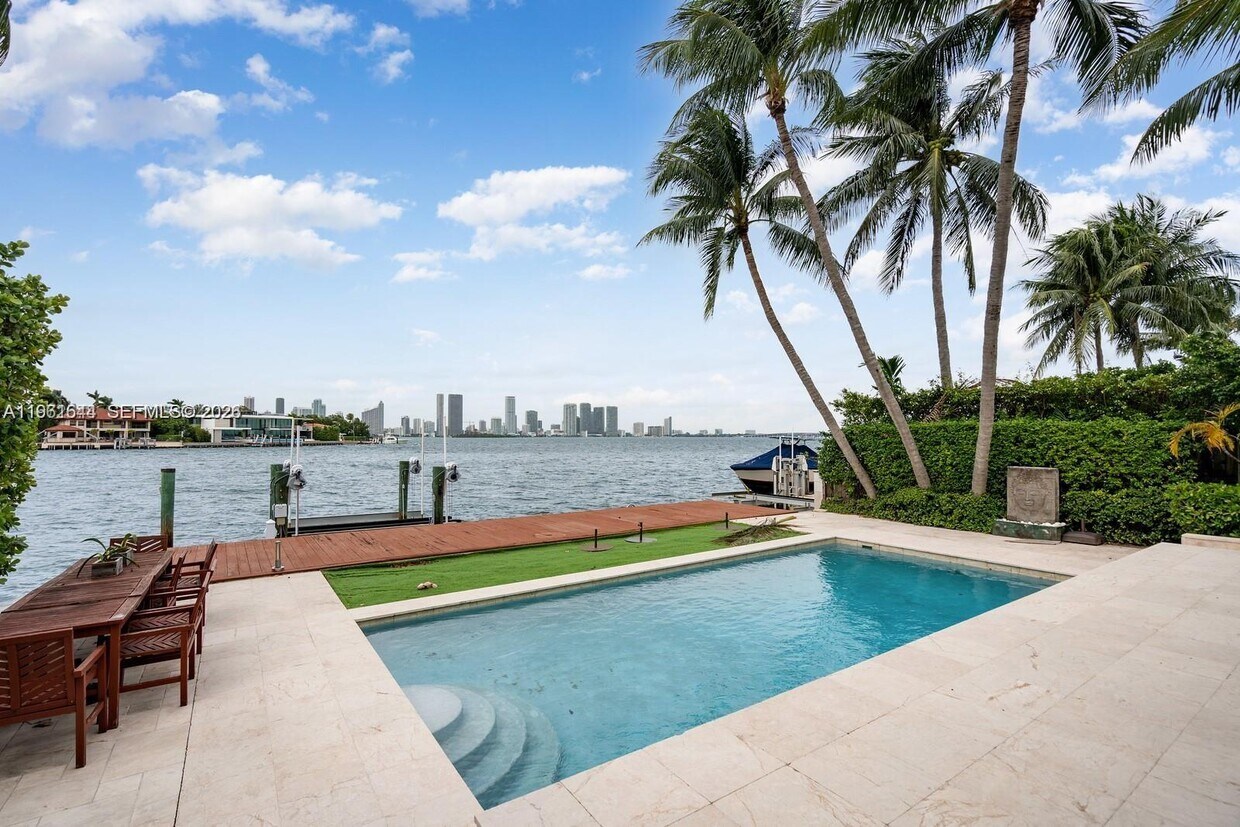 A Prime waterfront Residence. Enjoy stunning water and sunset views from this West Dilido home on Venetian Causeway. Soak in the tranquil island life living in this one-story home with dock, boat lift and pool. This fantastic 5BR/ 5.5 BA home has incredible views of downtown Miami and Intracoastal. The Large west facing lot is anchored by 65' of waterfront and a dock with a nice lift. The house is spacious with 10' ceilings and an open floor plan with an open Kitchen great for entertaining. The Primary BR has a waterfront view with Large closets and a stunning Primary Bath. The house has floor to ceiling impact windows and doors, extra-large wine cooler, den, laundry room and is gated and very private with parking for 6 cars. Available March 1. MLS # A11961644