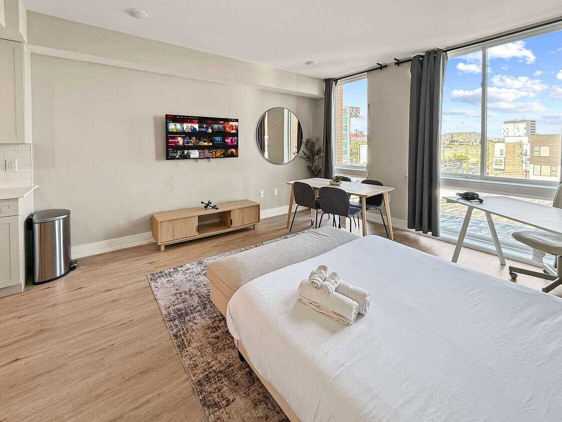 Nestled in a vibrant neighborhood, this charming studio apartment offers a delightful retreat in the heart of the city. Located just steps away from bustling streets and cultural landmarks, this space is ideal for couples or solo travelers seeking a comfortable stay with easy access to the city's attractions. This inviting studio apartment is thoughtfully designed to cater to all your needs for a carefree and enjoyable stay. As you step inside, you'll be greeted by a bright and inviting space, thoughtfully designed for comfort and convenience. The studio features a comfortable queen-sized bed, perfect for a restful night's sleep after a day of exploring the city. Equipped with a comfortable desk and chair to ensure you can work for extended periods without discomfort. The fully equipped kitchen features modern appliances and everything you need to whip up a delicious meal. Enjoy your culinary creations at the dining table. Pets are allowed depending on size. The following additional per pet cleaning fee applies: 1-4 nights: $25 per night, 5-29 nights: $200, and 30+ nights: $300. This apartment's prime location allows you to explore the city with ease. Discover local eateries, trendy boutiques, and cultural attractions just minutes from your doorstep. Whether you're here for business or leisure, this cozy apartment offers a perfect blend of comfort and convenience for your stay in the city. There are surveillance cameras in the hallways for security and a Minut device in the unit for noise level. No shoes are allowed in the house and please do your dishes before leaving. No smoking is allowed. If there is evidence of smoking indoors, a $500 fine will be imposed. [SI]