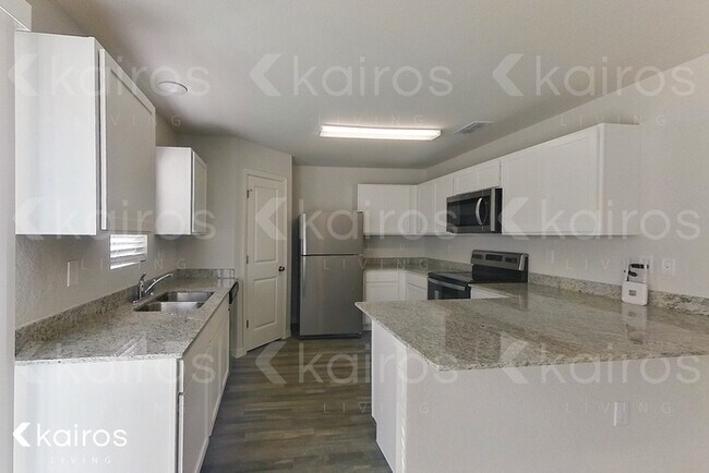 FREE APPLICATION! ASK ABOUT OUR CASHLESS SECURITY DEPOSIT OPTION! Welcome to Kairos Living, welcome home! Brand New Home in a Beautiful Neighborhood! This spacious 3 bedroom, 2 bathroom single-family home in North Port features: Keyless Locks, Smart Thermostat, Primary Suite, Hardwood Floors, Granite Countertops, Stainless Steel Appliances, Open Concept Layout, Office, Washer/Dryer Hook-Ups, and Two Car Garage. Kairos Living has no pet restrictions and is happy to provide long-term leases and 24/7 Emergency Maintenance! Amenity Fees May Apply. Visit to tour this home on your schedule with our "Self Tour" feature and apply today! This property allows self guided viewing without an appointment. Contact for details.
