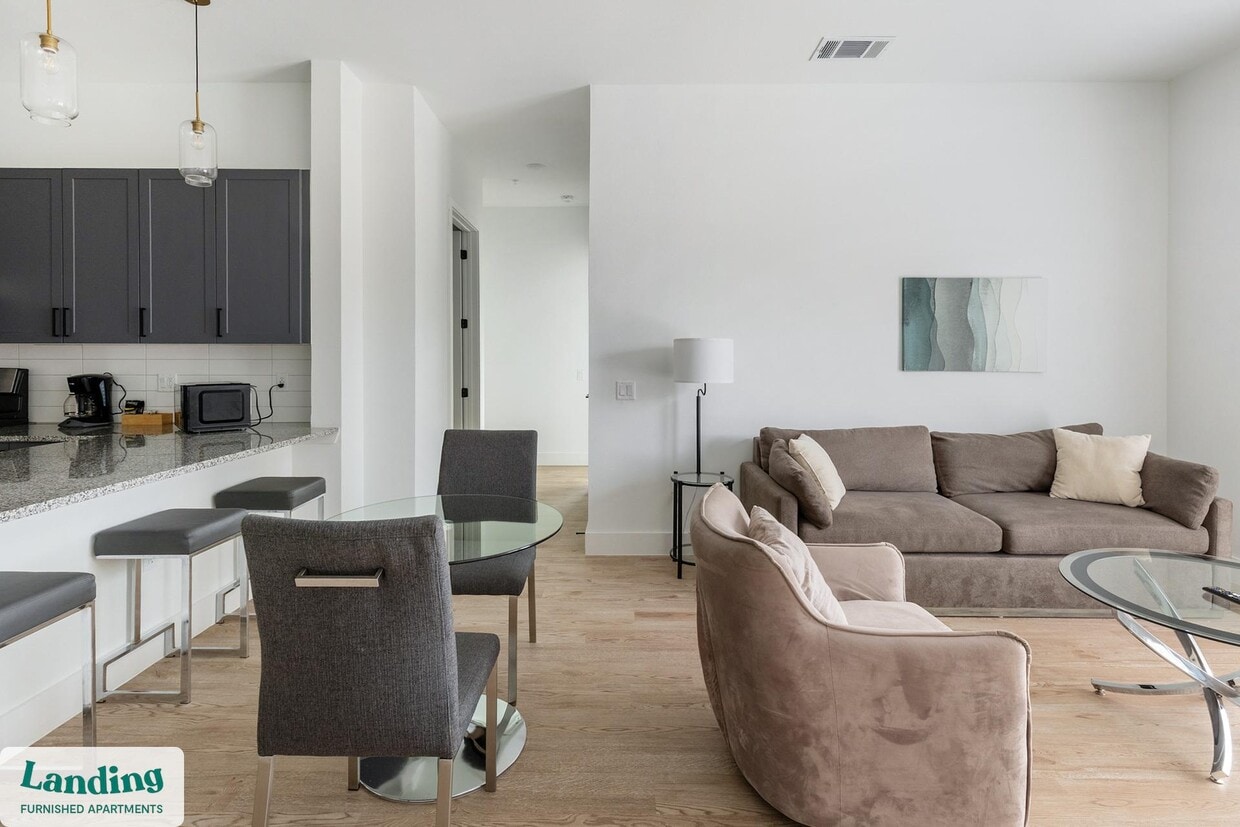Landing is a top-rated, fully furnished apartment network with thousands of homes across 250+ U.S. cities. With premium amenities, a mobile app to manage your stay, and 24/7 support. Our apartments have everything you need for monthly and longer stays. 6-Month Minimum base rent: starts at $3055/mo 12-Month Minimum base rent: starts at $2841/mo Landing's apartments at Railyard are designed for comfortable, easy living, with the ability to stay as long as you like. All Landing apartments include: - Fast Wi-Fi - Stylish furnishings - Fully-stocked bathroom - Smart TVs - Comfortable bed - Professionally cleaned - Guest support Stay longer for cheaper! The longer you stay, the bigger your discount. Price advertised is for a 12-month stay, including all utilities and fees, and may vary based on availability. We manage multiple units at this property. While all feature a similar style and furnishings, the layout and specific design elements may vary slightly from the photos provided. Some of the nitty-gritty: a background check and proof of income are required; we're completely smoke-free; pet-friendly options are available; parking is subject to availability.