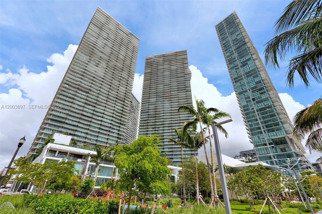Largest unit at Paraiso Bay, this spacious 2-bedroom, 3-bath residence offers breathtaking Miami skyline and water views. The unit features Italian porcelain wood-look floors, motorized window treatments, and custom closets throughout. The upgraded kitchen is ideal for anyone who loves to cook, with great storage and a clean, modern finish. Enjoy resort-style living with impressive amenities including a beach-entry pool, fitness center, social spaces, theater, and more. Prime Edgewater location near Wynwood, the Design District, Downtown, and Miami Beach. Tenant occupied, tenant is looking to move out as soon as possible. Tentative move-out date is Jun 1. Showings by appointment only. MLS # A12003897