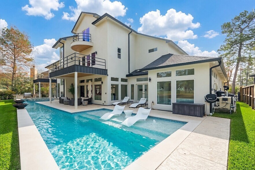 Stunning luxury home located on a premier golf course lot with tranquil lake views in Spring, Texas. This expansive residence offers 5,771 sq ft of refined living space featuring 5 bedrooms, 5 full bathrooms, and 2 half baths. The open, flowing floor plan is filled with natural light and showcases modern finishes throughout. The gourmet kitchen is equipped with stainless steel appliances and ample cabinetry, ideal for both everyday living and entertaining. The primary suite features a spa-like bathroom with soaking tub, oversized separate shower, and elegant finishes. All secondary bedrooms include private en-suite baths, providing comfort and privacy. Additional highlights include a spacious third-floor game room with half bath, a striking modern staircase, expansive windows overlooking the golf course and lake, a 3-car garage, and porte-coch re. This exceptional property offers luxury, space, and serene views in a highly desirable location.