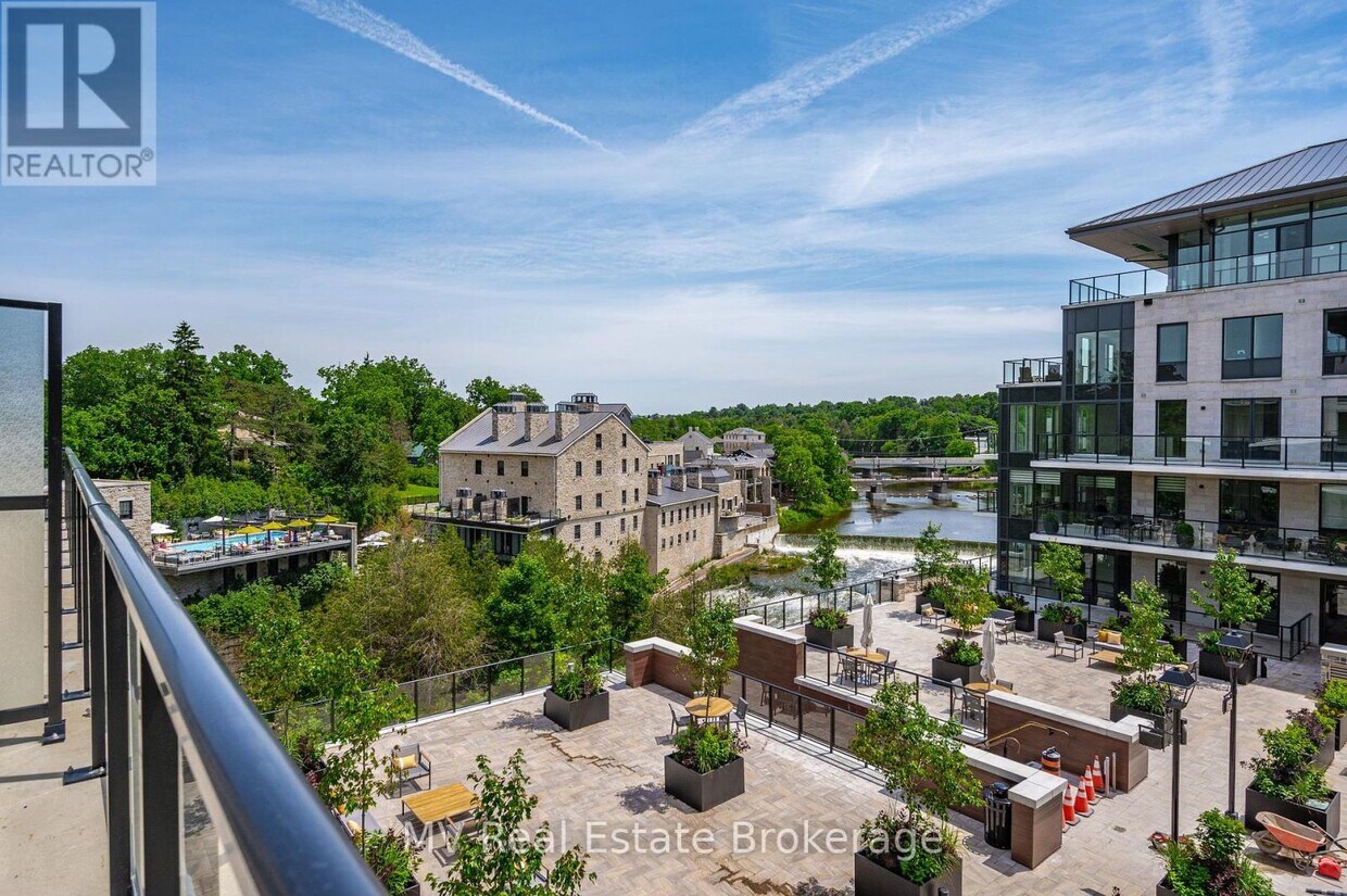 If you have been waiting for the right unit to come along in the Elora Mill Residences,look no further! This 2 bedroom,2 bathroom unit with a massive terrace overlooking the town of Elora and the stunning Grand River is now available. This unit offers high end finishes from top to bottom,year-round indoor parking and your own private storage locker on the 3rd floor just down the hall from your luxury suite. No doubt the massive quartz waterfall kitchen island,hardwood floors and built-in appliances will impress but just wait until you step foot on the balcony which boasts one of the premiere views in the entire building. At close to 400 square feet and blue-sky views of the historic Elora Mill and Grand River,this outdoor space is an entertainer's dream. Other building amenities include multiple luxurious common areas indoor and outdoor,a small cafe bistro in the main lobby,workout facilities and private outdoor pool. As if that wasn't enough,the convenient access to the Elora Mill Inn and the many shops and restaurants of beautiful downtown Elora is incredible. A quick stroll down the portage trailway that runs through the property,and you will find yourself on the walking bridge which lands you right into the downtown core of Elora. Come see this unit today and make this hallmark movie lifestyle your reality! (id:52069) ID#: 2164913