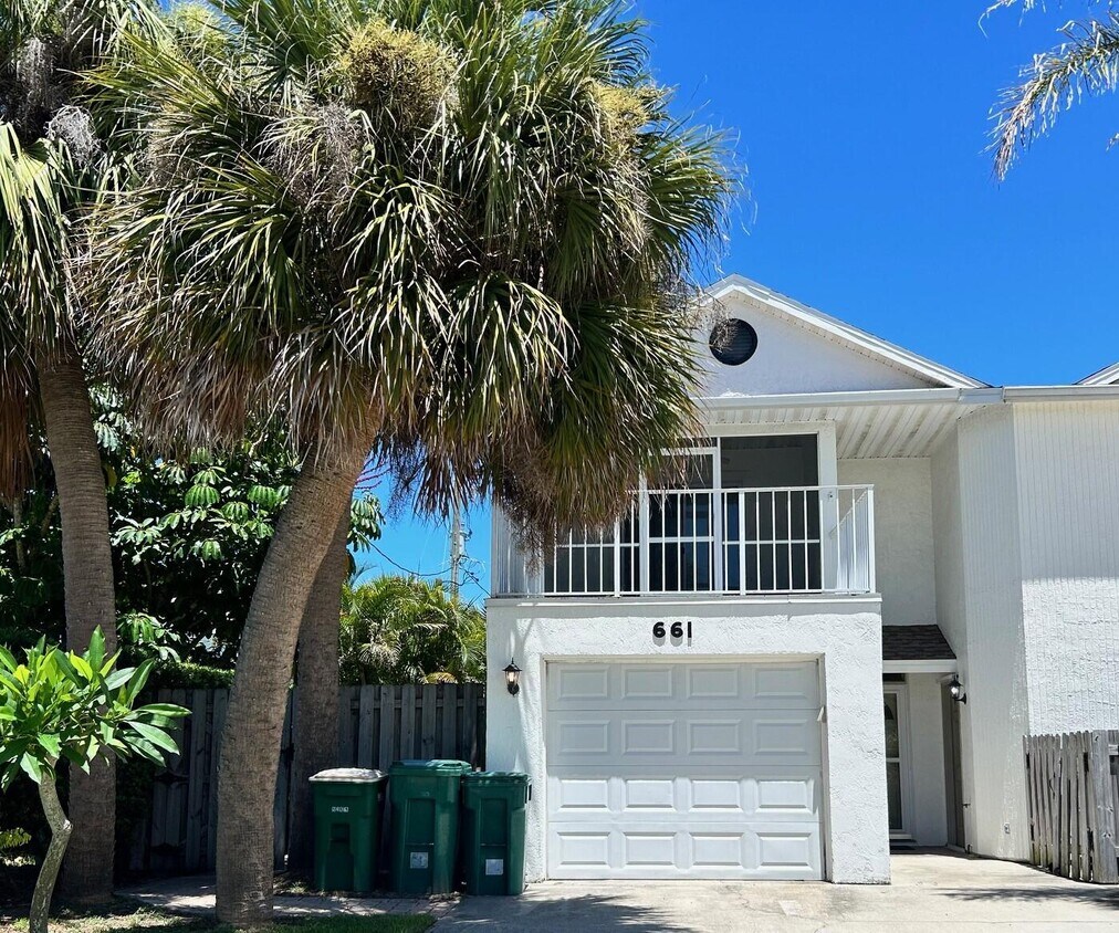 Welcome to your beachside rental,just two blocks from A1A and the beach! This spacious townhome features three bedroomsone on the main floor and two upstairs. Each upstairs bedroom has its own en-suite bathroom and walk-in closet. The west upstairs bedroom includes a large walk-in closet,a screened porch,and an open porch area. The main floor offers a carpet-free environment with a combined dining and living area,an indoor laundry area with a washer and dryer,and a full bathroom. Enjoy the outdoor area with a sail cover for shade and additional outdoor storage. This townhome is perfect for those seeking a beachside lifestyle. Contact us today to schedule a viewing!