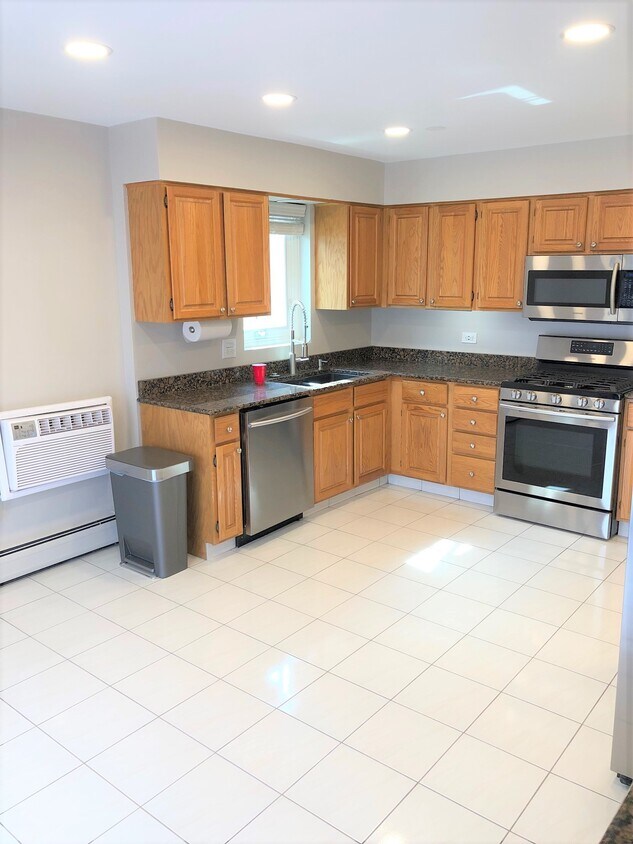 $2300 Edison Park – Available Sept 1 2025 First Floor Apartment / Large Renovated 3 bedroom Apartment - in quiet 3 apartment building – with lots of windows. Quiet side street location. Plenty of street parking in front of building. 5 minute walk to METRA station and Northwest HWY CTA # 68 Bus Line to Jefferson Park Blue Line 10 Restaurants within 2 blocks, and more in Park Ridge including the Pickwick Movie Theater… Fully remodeled, newly painted, 6 panel white doors and trim. Open concept living area, with dining area and large eat-in kitchen, with ample lighting including can ceiling lights thru out. New crank open windows and white 2 inch vinyl window blinds for privacy Carpeted and tile floors, radiant baseboard heat throughout entire apt keeps your toes warm all winter long. Main bathroom newly remodeled, vanity, granite top, tub and shower. Main bedroom fits king size bed, has ceiling fan. 2 large closets, in-suite bathroom newly remodeled, vanity, granite top. Shower only. 2 additional bedrooms large enough to fit queen size beds. Gourmet kitchen with newer • Oak wood cabinets • Stainless steel appliances, • Gas stove and convection oven, • Microwave with exhaust fan, • Bosch dish washer, • Granite sink with garbage disposal, • Granite counter tops • Washer and dryer in unit on same floor No Pets and Non-Smoking Unit. Owner occupied Security Deposit 1-2 month depending on credit score Credit score check 700+ required thru credit report submission. Showing by appointment