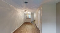 My wife and I lived here for a year (2019-2020) in a 1BD/1BA and really enjoyed our stay. The only reason I did not give it 5 stars is because of some of the quirks. Long story short, it's a good value. Word of advice: spring for a 2BD/2BA if you can. Location: Excellent. You are literally a minute from the highway. I was a Liberty student and commutes were awesome. ALDI and Kroger are both nearby for groceries. Bonus: it's got a great view for sunsets. Management: Excellent. They are polite and responsive. Maintenance was completed quickly. But they many not honor your requests to set appointments and will show up at your door first. House Quality: Good...for the price point. We got a remodeled apartment that had wood-look laminate floors and new carpet. Overall, not bad. The doors and windows are drafty. The walls aren't bad. You can hear some noise through the walls and share some vents with the neighbors, but not so loud that you'd be able to make out any words that are being said. Quirks: The one-bedroom apartments are designed oddly. Your back door will not open all the way because the fridge sticks out too far. The in-unit laundry is very convenient...but in the one-bedrooms the washer is not hooked up to the wall--it hooks up to the sink. Laundry day can be a real pain because of it. The dryer also vents into the unit itself, which means all the hot air from the drier will fill up the apartment. Invest in a drying line for the summer. Summary: It's a halfway decent apartment for a good price. If you don't mind dealing with the quirks, you're going to be in a great location.