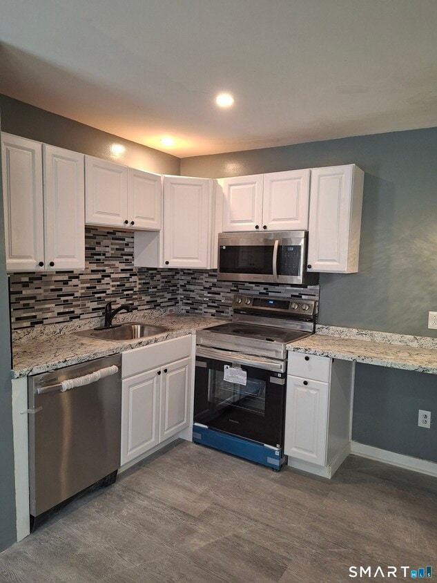 Call for Availability - Completely renovated 1st floor apartment in the heart of East Hampton a quick walk away from Lake Pocotopaug. Master bedroom with full bathroom, brand new eat in kitchen, new flooring, additional full bathroom and second bedroom off kitchen. Private backyard perfect for pets. MLS# 24152473
