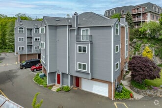 Seir Hill Gardens, a four-story condominium complex, was constructed in 1995 and offers a total of 51 units. Located in Norwalk, Connecticut, this building combines brick and vinyl siding with a gabled roof and bay windows, creating a welcoming and functional living environment. The ground level features garage doors, providing convenient parking options for residents.