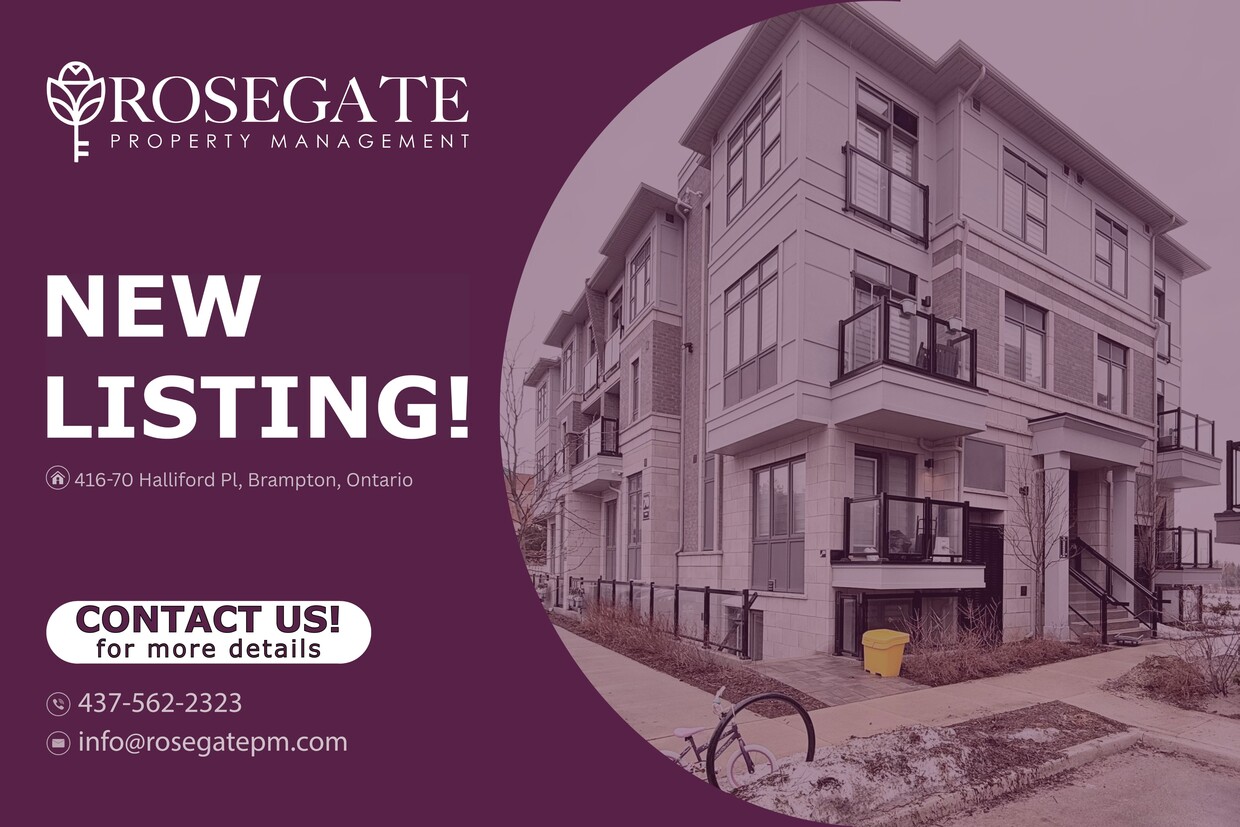 Modern 2-Bedroom Corner Townhouse with Balcony & Parking – Brampton Welcome to 416 – 70 Halliford Place, Brampton, a well-maintained freehold townhouse offering approximately 1,000 sq. ft. of comfortable living space.This corner unit features 2 bedrooms and 1 bathroom, making it a great option for professionals, couples, or small families looking for a modern and functional home in a convenient Brampton location.The bright and efficient layout includes spacious living and dining areas, while the primary bedroom features a walk-in closet for added storage and convenience.The kitchen is equipped with stainless steel appliances, including a dishwasher and microwave, offering both style and everyday practicality.Additional highlights include in-unit washer and dryer, heating and air conditioning, and a semi-private balcony perfect for enjoying fresh air.The home also includes one dedicated parking space for added convenience.Located close to shopping, parks, schools, and transit, this professionally managed rental offers comfortable living in a desirable Brampton neighbourhood.Schedule your viewing today.