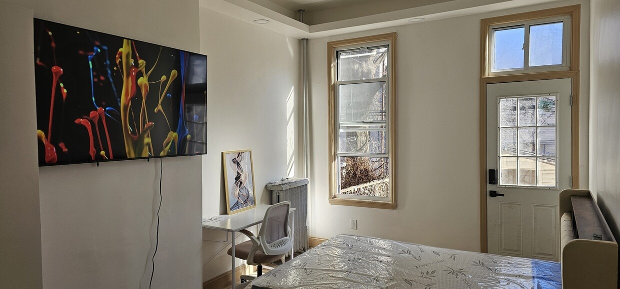 ROOM DETAILS: Standard Rent = $1250 - $150 (3-month discount) = $1100 monthly. For three months, you can enjoy this beautiful room for a discounted rent of $1100 per month + a small fee for basic utilities and other add-ons. After three months, the rent will adjust to the standard rate of $1250 per month. This is an incredible opportunity to experience this home at a special price." Perfect room for someone looking for a basic, clean, quiet home with cool roommates to sleep, eat, and have someplace safe to come home to after grinding on your career all day out in NYC. A Unique Living Experience with Modern Comforts & Shared Convenience Are you looking for a transitional living space before buying your first property? This is the perfect place to save money while still enjoying the feel of a complete home in a shared living environment. This large, well-furnished room directly connects to the backyard, offering a spacious and secure retreat. Inside, you'll find a cozy queen-sized bed and a functional desk with a chair. The room is enhanced with modern features like an app-controlled lighting system that lets you change colors to match your mood, a fresh air system controlled by a switch, and a stylish center light. While the home is shared, the common areas—kitchen and 1.5 bathrooms—are kept in pristine condition through a structured cleaning schedule. Each tenant is responsible for cleaning only during their assigned week, making maintenance effortless compared to a setup where you'd have to clean constantly. This well-balanced system ensures flexibility and fairness while keeping the home consistently clean. With all these premium features and a hassle-free living arrangement, this space is an unbeatable find! THIS IS A ROOM FOR RENT with Backyard access out of 5 rooms total. All roommates have professional jobs and are rarely home. This large room has high ceilings, a closet, and beautiful mood-setting LED lights. Keyless entry for the house and the room. You share the kitchen and the 1.5 bathrooms. PROFILE: We are seeing VERY CLEAN ROOMMATES ONLY for this home. This room is clean, in a very structured and organized home with excellent roommates. All roommates have professional jobs and or go to school so they are rarely home. We are looking for roommates who complement the current tenants, are good people, have no drama, and are clean. Very financially stable via either a mix of your job on the books, solid co-signer, high level of savings, or other solid proof of financial strength - to be discussed. RENTS & DEPOSITS: If your credit is great and meets all other requirements, we can just take the 1st month with a security deposit = the rent x 2. If you have issues with your financial status, such as credit, savings, lengths of employment, etc, you may still qualify for our "rent credit option" plan to secure the room. Complete the form to schedule a call for more details and discuss your financial status to get approved for the room. LOCATION: 1 block from the J train. The home is a 15 - 20-minute ride to the first stop in Manhattan during rush hour, a few subway stops away from Woodhull Hospital, and a short travel distance to Wyckoff Hospital. The closest bus routes are B26, B20, B7, B52, and B60. 6 blocks away from the L train. You are within walking distance of a few laundromats, about 2 -3 blocks away in any direction. There's a 24-hour Rite Aid next to the train station. Multiple food options and chain fast food are all nearby. Large discount stores where you can buy everything you need to make your room fully functional. If you are into nightlife, there are plenty of things to do nearby as well. The street of the home itself is very quiet with respectable neighbors who work hard by day and enjoy peaceful nights. EXTRA DETAILS: Fully furnished, queen-sized bed, chair, and desk. A small fee for basic utilities. Backyard Access Smart LED Lights Extra fee for AC usage. High-speed upload and download internet for a small monthly fee. Security surveillance home. Smart lock passcode entry room. No pets are allowed. LONG-TERM VALUE: We are not real estate agents, and we do not charge fees to rent our room. You will be speaking directly to members of the management team who represent the owners of this home. We are thorough and diligent with over 40 years of combined experience. Our only goal is to get the best, qualified renter for this home. Be careful about rushing into a home that only requires a little to get in. There are many horror stories out there; It's better to be safe than sorry. Our home is extremely safe, and many tenants often leave their doors open without issues. Safety, cleanliness, and peaceful living are our top priorities. Because of this aim, we screen to match you up with genuine like-minded people. Contact us at: Call Bayo (sounds like bio) for more info. Try to call from a cell phone, just in case we miss your call, for a prompt text reply. Office: Text ONLY: