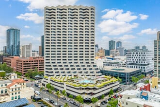 Meridian Tower, a landmark residential community in Downtown San Diego's Marina District, stands as a testament to sophisticated urban living. Completed in 1986, this 27-story high-rise offers 264 luxury condominiums, ranging from intimate one-bedroom units to expansive five-bedroom penthouses. The building's distinctive wavy balcony design and green roof garden set it apart in the city skyline, while its prime location puts residents at the center of San Diego's vibrant cultural scene.