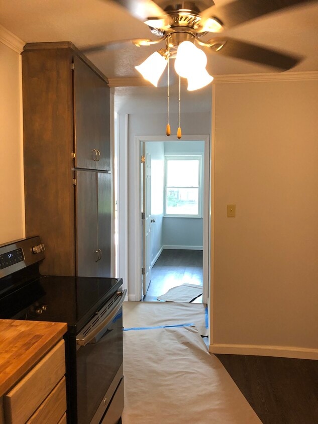 from living room to hallway into kitchen