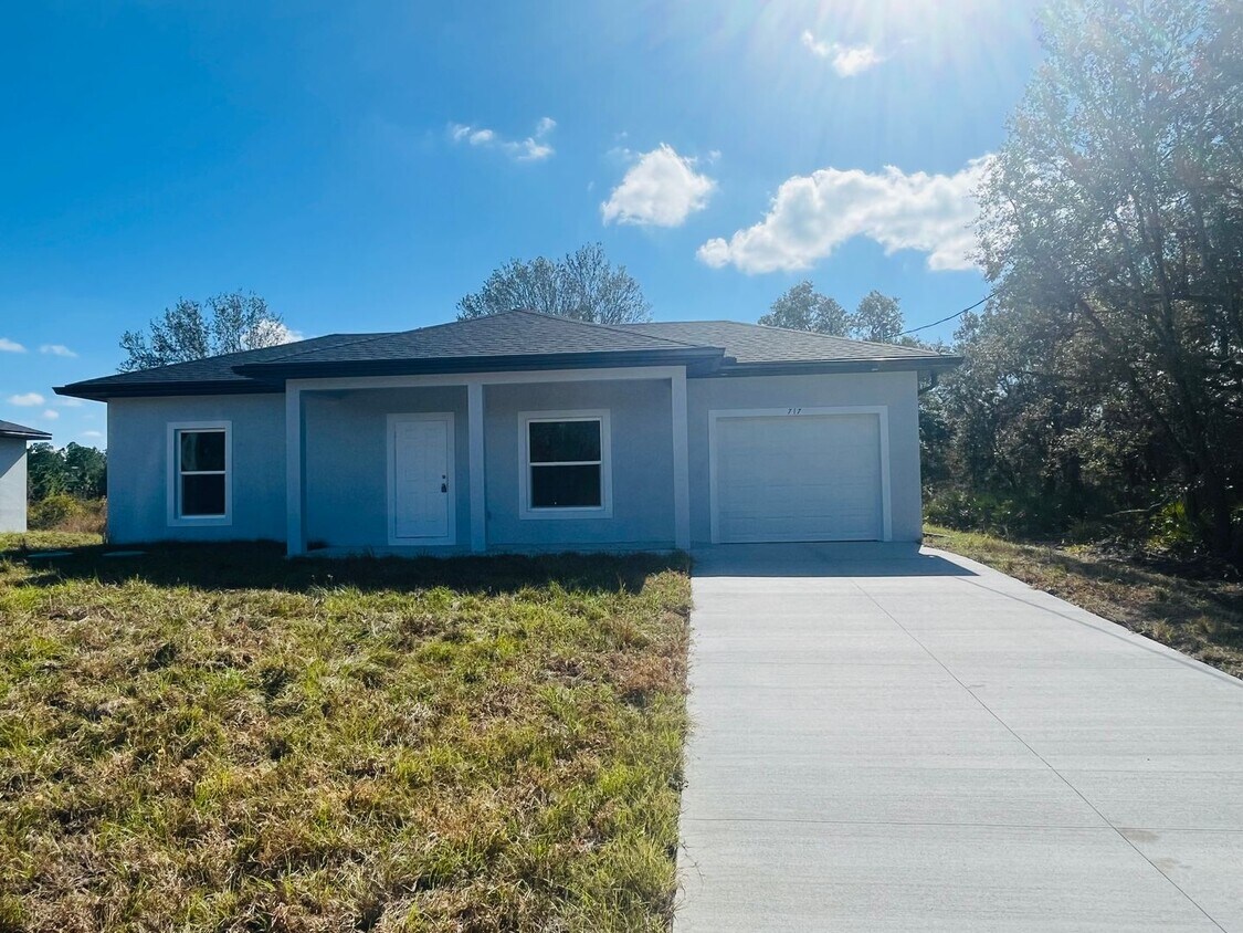 Welcome to the Brand New 1/1 in Lehigh Acres, a one-of-a-kind home that is ready for you to make it your own. This brand new, move-in ready home is nestled in a private setting in the heart of Lehigh Acres, a great location close to all local amenities. The home boasts a large kitchen with a spacious island, granite counters, and a full appliance package, including stainless steel appliances. The entire home is adorned with beautiful tile flooring, adding a touch of elegance to every room. The primary bedroom features a huge walk-in closet, providing ample storage space. The home also includes a one-car garage, a large backyard, and storm protection-impact windows for added security. Enjoy the outdoors with an open front porch and a covered rear lanai. Pets are welcome in this friendly neighborhood. Don't miss out on this unique opportunity, see it today!