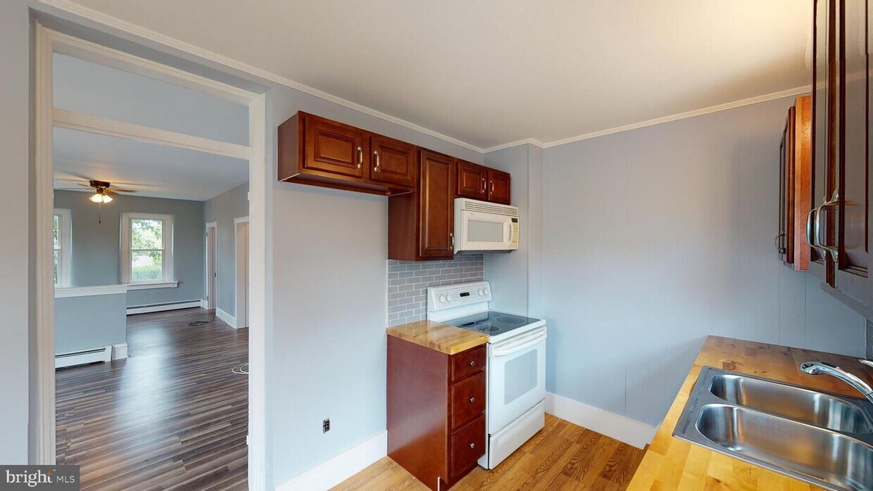 Totally redone - This newly updated, lovely property has three full floors of living space that are filled with natural sunlight and ready to be your home-sweet-home! The main level has a NEW kitchen, dining room, living room and half bath. The 2nd floor has a large full bathroom as well as two bedrooms that can easily be utilized as one huge primary bedroom . The top floor would make a wonderful studio, home office, family room or fitness room. A detached garage and full basement offer plenty of storage. Conveniently located to Route 309 and major commuter roads. ALL NEW Kitchen withe new cabinets, countertops and flooring. New flooring throughout all levels, freshly painted, and updated baths. New refrigerator will be provided by Landlord prior to occupancy. Laundry hookup is in basement. ** NOTE - Property could be viewed as a 3 bedroom due to it's age, however access to 3rd floor is through a bedroom.