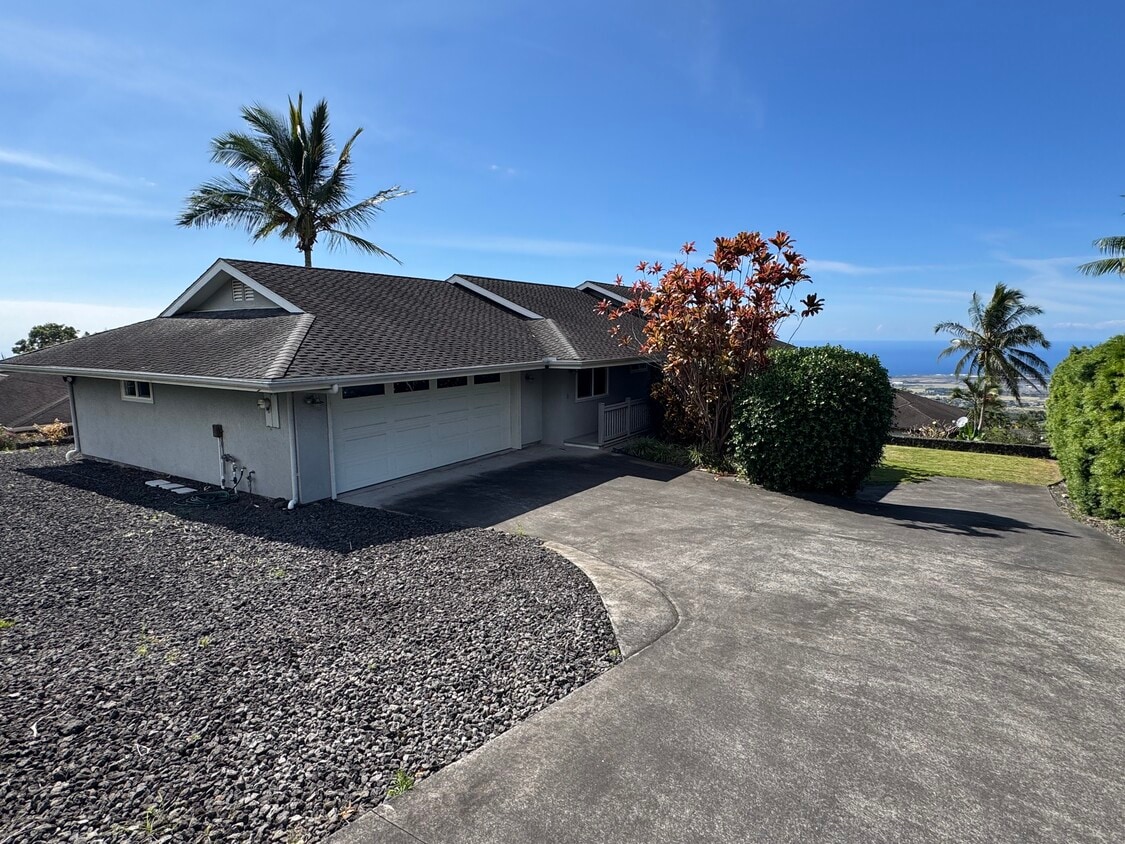 Stunning Ocean-View Home in Upper Kona Palisades Welcome home to one of Upper Kona Palisades’ most desirable locations, where sweeping ocean views, cool breezes, and breathtaking Kona sunsets define everyday living. This unfurnished 3-bedroom, 2-bath single-family home is nestled in Kalaoa Terrace, a quiet, private subdivision of well-maintained homes on a private road with a soon-to-be gated entrance. Property Highlights • Unobstructed ocean views from the covered lanai, living room and kitchen • Spacious covered lanai—perfect for sunset dinners and morning coffee • Cathedral ceilings enhance the open living and dining areas with light and airflow • Hardwood Floors • Large kitchen with abundant counter space, cabinetry, and a pass-through to the lanai • Brand-new Stainless-Steel Refrigerator • Split floor plan offering privacy for the primary suite • Jacuzzi Tub • Beautifully landscaped yard while offering excellent privacy • 2-car enclosed garage • Starlink high-speed Wi-Fi included • Utilities included (Electricity, Water, Gas) • Minutes from Kona International Airport • Cooler elevation and refreshing trade winds typical of Upper Kona Palisades Enjoy peaceful island living while remaining close to town, beaches, shopping, and dining. The elevated setting provides cooler temperatures and panoramic coastline views—ideal for those seeking both comfort and tranquility. Available January 15th 2026