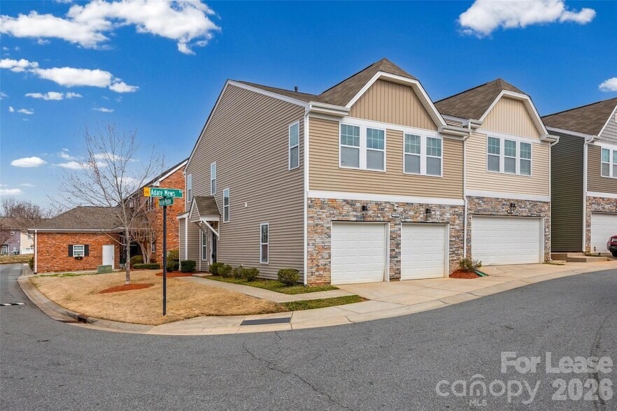 Beautiful 3-bed, 2.5-bath End Unit townhome in Adare Mews Community has all-new paint and carpet. Open floorplan with lots of light on the main level. The kitchen boasts granite countertops, a large island, and stainless steel appliances. The large open living/dining area offers lots of options. The dining area opens to the patio in the back. The bedrooms are on the upper level with a small loft and laundry closet. The primary has an ensuite bath with a large double sink vanity and a shower/tub combo. The two nicely sized secondary rooms share a full hall bath with a shower/tub combo. Close to Southend, I-485, shopping, and restaurants. Pets Conditional. **No Cats**