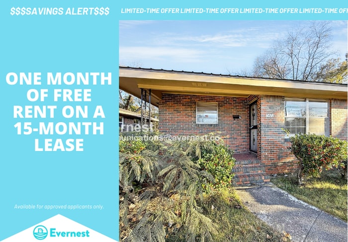 Limited Time Special Offer - Split your security deposit payment. Pay only 50% of your security deposit upfront to reserve the home, with the remaining balance due at move-in. Get 1 Month FREE Rent when you sign a 15-month lease today! Don't miss this opportunity to save big on your new home—limited-time offer. Discover a spacious home offering 1,690 square feet of practical living space. This 2-bedroom, 1-bathroom property is designed with functionality and comfort in mind, featuring essential amenities for every lifestyle. Stay cool and comfortable with integrated A/C and ceiling fans. The home is well-equipped with washer-dryer hookups, a convenient component for managing laundry needs without hassle. The kitchen provides an oven hood vent, ensuring a clean and efficient cooking experience. With durable wood plank and tile flooring throughout, maintenance is kept simple, offering both style and longevity. The exterior contributes to the appeal with a neatly maintained lawn, perfect for various outdoor activities or relaxation. Ideal for everyday living, this home combines convenience with the ease of access to vital amenities, making it a smart choice for those seeking a strategically located residence. Whether you're a busy professional or just looking for a well-appointed place to call home, this property offers everything you need for a streamlined and comfortable lifestyle. Explore this opportunity today to find a residence that meets your requirements with simplicity and ease. Pets: No Residents are responsible for all utilities. Vouchers Accepted: Yes. Application; administration and additional fees may apply Pet fees and pet rent may apply. All residents will be enrolled in the Resident Benefits Package (RBP) for $49.99 and the Building Protection Plan for $12.00, which includes credit building, HVAC air filter delivery (for applicable properties), utility setup assistance at move-in, on-demand pest control, and much more! Contact your leasing agent for more information. A security deposit will be required before signing a lease. Bulk internet service for $65.95/month, offering 1 GIG speed. Please confirm service availability with our team before activation. The first person to pay the deposit and fees will have the opportunity to move forward with a lease. You must be approved to pay the deposit and fees. Beware of scammers! Please contact Evernest Property Management at before leasing. Evernest will never request you to pay with Cash App, Zelle, Facebook, or any third party money transfer system. This property allows self guided viewing without an appointment. Contact for details.