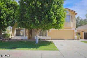 Welcome to this stunning home located in the heart of Glendale,AZ. This property boasts five spacious bedrooms and three full bathrooms. Main floor has 1 bedroom and bathroom. Fresh paint T/O. New laminate flooring upstairs and on the stairway. There is a two-car garage. Backyard has covered patio. Grass in front/backyard. Inside,you'll be greeted by beautiful granite counters that add a touch of elegance to the kitchen. The home also includes a formal dining room,a living room,and a great room with fireplace,offering plenty of space for entertaining or simply relaxing.
