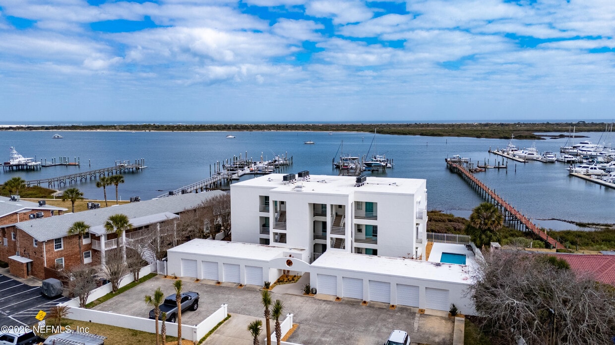 Attention Boaters & Anglers - Your Waterfront Escape Awaits. If your perfect day starts with lines in the water and ends with a sunset cruise,this direct waterfront condo just south of the inlet in Salt Run was made for you. With quick access to both inshore and offshore fishing,you can be casting within minutes,whether you're chasing flounder,sheepshead or redfish in the flats or heading offshore for mahi and sailfish. Offered furnished or unfurnished,this exceptional rental welcomes you with breathtaking water views the moment you walk through the door. Step onto the expansive balcony and take in sweeping vistas of the Atlantic Ocean,Salt Run,Lighthouse and Conch Island. If you love bird watching,then you would enjoy over 30 different varieties of birds that live right here. The same mesmerizing views fill the combined living and dining areas as well as the eastern-facing owner's suit,you'll fall asleep to glowing moonrises and wake to spectacular sunrises over the water. Love cooking your catch? The open living space makes it easy to prepare and enjoy the day's haul while still soaking in the scenery. With only nine units,and just three occupied full-time,Inlet Place offers peaceful,uncrowded waterfront living. Lush tropical landscaping and a sparkling pool create a true coastal retreat atmosphere. The guest bedroom is privately positioned at the front of the unit and features its own balcony,perfect for visiting friends or family who share your love of the water. For the serious boater,this property truly stands apart. The condo includes its own private boat slip at the end of the dock with a lift capable of handling up to a 12,000 lb or 31' vessel,as well as a single car garage. (Boat lift and single-car garage are available as separate options) Located on Salt Run with the St. Augustine Inlet just minutes away by boat,and The Conch House Marina right next door for fuel and provisions,this is effortless nautical living. All of this,just a short walk or bike ride to historic downtown St. Augustine. MLS# 2131933