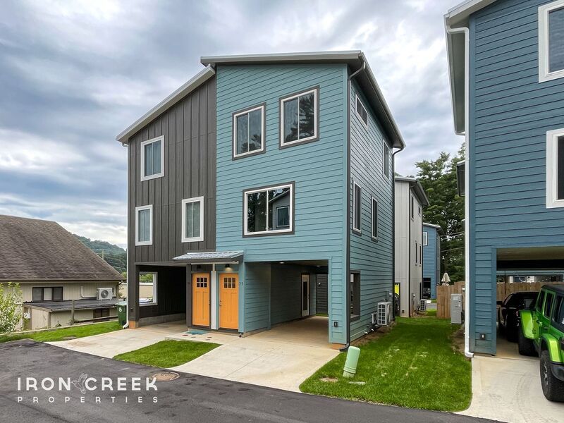 77 E. Cascade is a beautiful, new-construction compact cottage conveniently located near Long Shoals and Hendersonville Road in South Asheville. This cottage is mere minutes from some of Asheville's best shopping and entertainment opportunities. The cottage is spread across three stories. A carport and laundry room, with included washer and dryer, are located on the lower level. The kitchen, living room, and a half-bath are located on the mid-level. The two bedrooms and full bath are located on the top level. The kitchen is outfitted with an electric range, built-in microwave, dishwasher, refrigerator, stainless-steel sink, and plenty of cabinet and counter space. The exposed rafters and Edison bulbs add warmth to the living room. The bedrooms have large closets and extra storage nooks. Mini-splits are located throughout the home to allow custom comfort year-round. Landscaping and washer/dryer included. Tenant pays electric, water, sewer, and garbage. Sorry, no co-signers. This property is pet-friendly, up to two pets, with a $250 refundable deposit per pet. Maximum of two cars permitted with driveway-parking only. This property is owned and managed by a licensed North Carolina Real Estate Agent and Realtor.