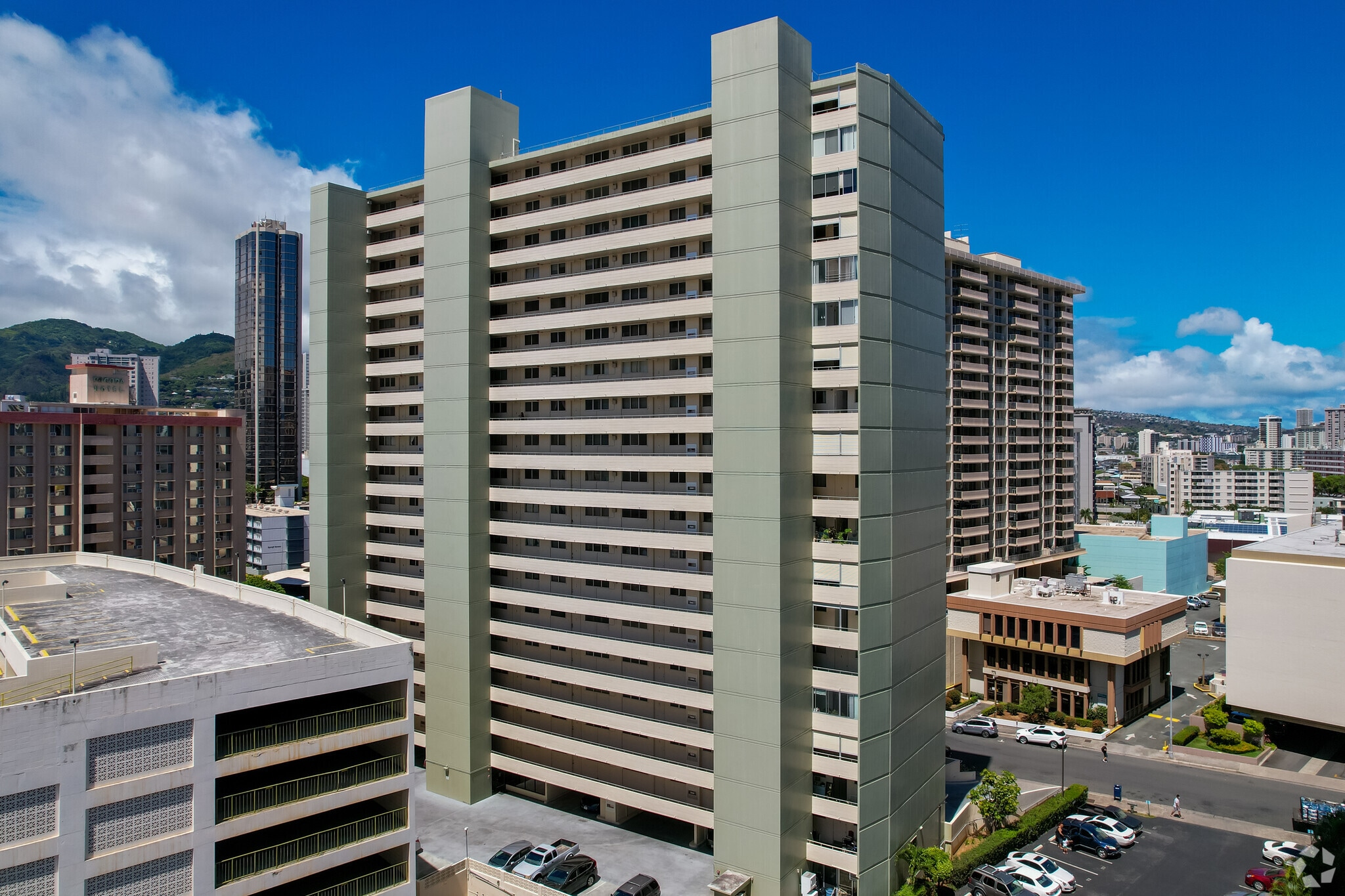 A testament to enduring architecture, The Woodrose was established in 1967, rising to a prominent 20 stories in the vibrant heart of Kaka'ako. This residential icon has been a fixture in the neighborhood for decades, offering 143 units that have been home to a diverse community of residents. The building's history is reflected in its well-maintained structure and the sense of community that pervades its walls.