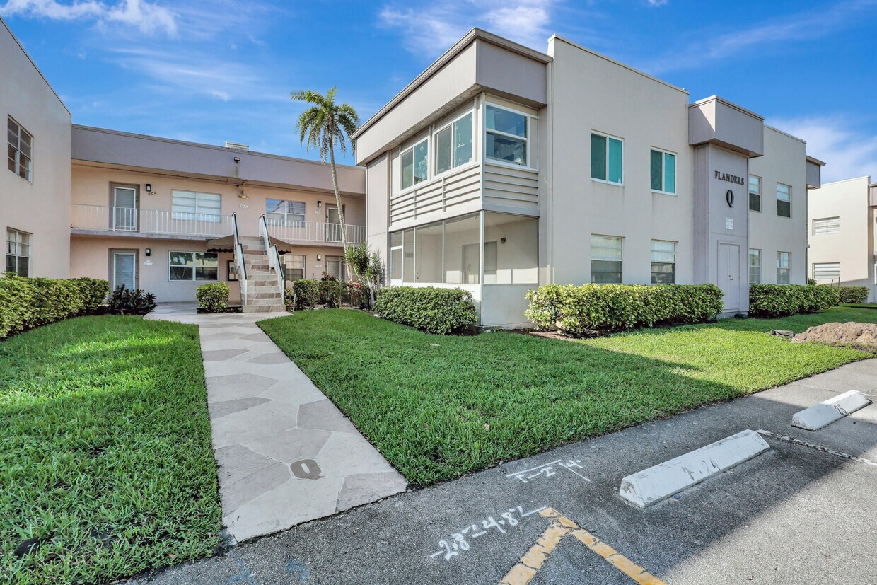 GREAT FIRST FLOOR 2/2 IN ALL CONCRETE BUILDING. BEAUTIFULLY REMODELED KITCHEN AND UPDATED BATHS. ALL TILED ENCLOSED PORCH OVERLOOKING QUIET PRIVATE GARDEN AREA. NO PARKING LOT!!WALK TO FLANDERS CLUBHOUSE GREAT LOCATION EASY TO SHOW