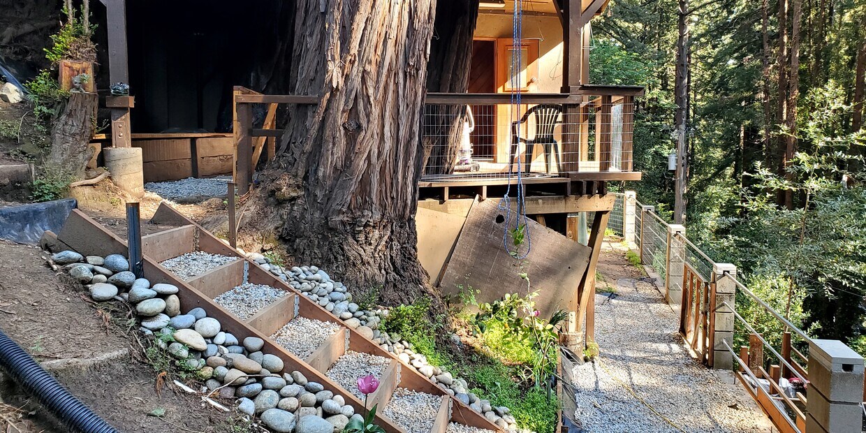 This lower unit is located on a quiet road that blends into the forest east of the Boulder Creek golf & country club. Less than 2 miles from downtown Boulder Creek and 30 minutes to Saratoga/Cupertino, Los Gatos, and Santa Cruz via hwy 9, Bear Creek Rd and Graham Hill Rd, or 45 minutes to Menlo Park/Palo Alto via Skyline Blvd and hwy 9. Walking distance to Camp Campbell, San Lorenzo River, Garrahan Park and The Sawmill Restaurant. Tile & SPC flooring in all areas. Dedicated air conditioning/heating with wifi control. Lighting with wifi or voice control available. Gas range, outdoor exhaust hood and double sink in kitchen. In unit washer/dryer. Backup generator, outdoor security cameras and outdoor security lighting if needed. Private gated lower deck and gated front area with 55 cu ft outdoor storage shed. Rent is $2,100 per month + a flat rate of $200 a month for reasonable use of utilities. Utilities include: Gas, Electricity, Water, Sewage, Garbage and a shared 200+ Mbps internet service. Tenants may have a separate internet service installed at their expense. Please note that there are many steps associated with accessing this home. More convenient move in access may be available and scheduled via a side driveway. There are two existing friendly dogs and cats living on the upper property.