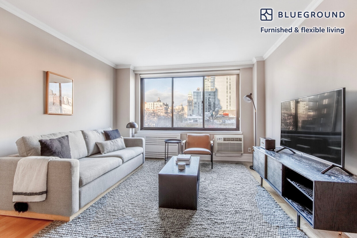 Show up and start living from day one in New York with this sophisticated one bedroom Blueground apartment. You’ll love coming home to this thoughtfully furnished, beautifully designed, and fully equipped Manhattan Valley home with stunning views over the city. (ID #NYC1324) The advertised rate of $4,920/month is the lowest available price, based on a 12 month(s) stay with a move-in date of June 1, 2026. Rates vary depending on the duration of stay, season, and other parameters. For exact pricing and additional pricing components, please visit our website and enter your desired move-in and move-out dates. The rate is applicable when billed upfront; it can be higher if billed in multiple payments. Brokers are welcome to reach out. Were you looking for an unfurnished lease? Try Blueground instead and upgrade from unfurnished to furnished living: - Furnished at rates comparable to unfurnished - No setup or furniture costs - save thousands - Move-in ready - save time, just bring your suitcase Designed with you in mind Gorgeous furniture, fully equipped kitchen, smart TV, and a premium wireless speaker are just a few of the amenities you’ll find inside this one bedroom apartment. Ideally located in New York, you’ll find a lot to love outside as well. When you’re ready to relax, you’ll be happy to discover every Blueground bedroom comes with superior quality mattresses, fully stocked linens, and cozy towels. We handle everything so you can simply show up and start living. Sleeping arrangements King Bed, 70.8in/180cm Amenities Building amenities unique to this one bedroom apartment include an on-site: - Doorman - Dryer in building - Elevator - Washing machine in building - Pets allowed - Playground Arrival and ongoing support The entire apartment is yours to enjoy! Throughout your stay, you’ll have access to our Client Experience team through the Blueground App. You can schedule additional cleanings, submit maintenance requests, and view our neighborhood recommendations with just a few taps. We’ll share all details upon confirmation of your stay. Other things to note Building amenities may have an extra cost. This Blueground apartment has flexible lease options, allowing you to book it for one month, a year, or more. Pets are welcome, though weight limits and breed restrictions apply and may incur fees. Brokes CYOF. We take great pride in ensuring every photo displayed is shot in our own units with our actual furnishings. That said, we regularly refresh our decor and furniture arrangement, which may differ from what’s pictured. [SI]