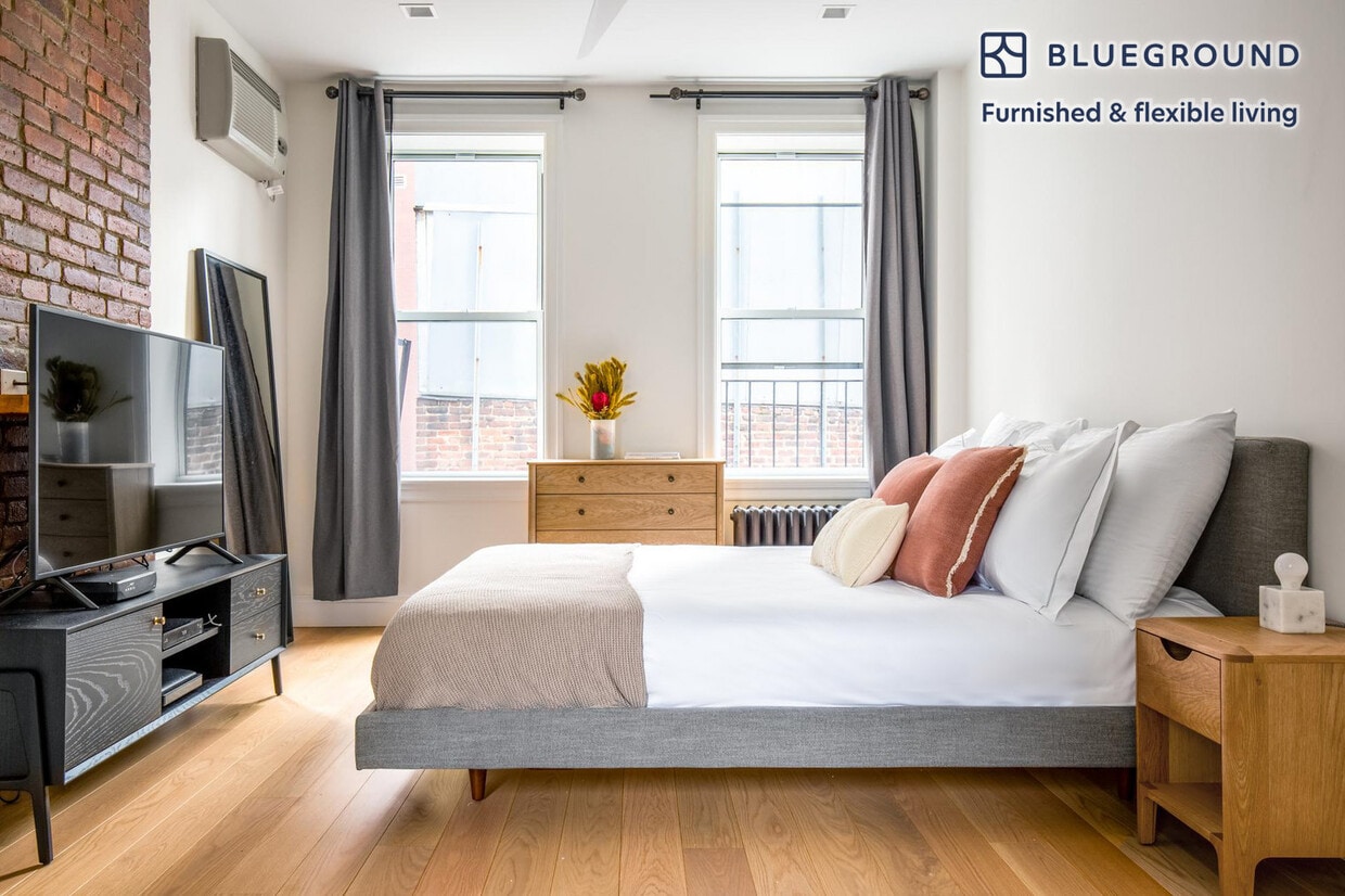 Show up and start living from day one in New York with this charming studio Blueground apartment. You’ll love coming home to this thoughtfully furnished, beautifully designed, and fully equipped SoHo home. (ID #NYC477) The advertised rate of $4,840/month is the lowest available price, based on a 12 month(s) stay with a move-in date of June 1, 2026. Rates vary depending on the duration of stay, season, and other parameters. For exact pricing and additional pricing components, please visit our website and enter your desired move-in and move-out dates. The rate is applicable when billed upfront; it can be higher if billed in multiple payments. Brokers are welcome to reach out. Were you looking for an unfurnished lease? Try Blueground instead and upgrade from unfurnished to furnished living: - Furnished at rates comparable to unfurnished - No setup or furniture costs - save thousands - Move-in ready - save time, just bring your suitcase Designed with you in mind Thoughtfully designed with bespoke finishes, modern furnishings, and a fully equipped kitchen, you’ll enjoy that “I’m home” feeling with this Blueground apartment. Whether you’re lounging in your sophisticated living room streaming the latest and greatest entertainment on the smart TV or premium wireless speaker, or getting some well-earned rest on the superior quality mattress with fully stocked linens, you’ll fall in love with everything this SoHo apartment has to offer. Sleeping arrangements Queen Bed, 63in/160cm Amenities Building amenities unique to this studio apartment include an on-site: - Dryer in building - Washing machine in building - Pets allowed Arrival and ongoing support The entire apartment is yours to enjoy! Throughout your stay, you’ll have access to our Client Experience team through the Blueground App. You can schedule additional cleanings, submit maintenance requests, and view our neighborhood recommendations with just a few taps. We’ll share all details upon confirmation of your stay. Ideally Located This furnished apartment is located in SoHo (which is short for South of Houston Street). Full of designer boutiques and high-end art galleries, this Lower Manhattan neighborhood is a popular destination for both locals and out-of-towners. Known for its elegant cast iron facades and cobblestone streets, it is a hot spot during the night or the day. The unique buildings set this neighborhood apart. In fact, it has been said that SoHo has the greatest collection of cast-iron architecture in the world. The fashionable crowd that frequents the area enjoys the countless shopping and dining options. The various bus and subway lines keep SoHo easily connected with the rest of the city. Using the subway, Times Square is just 20 minutes away. Other things to note This Blueground apartment has flexible lease options, allowing you to book it for one month, a year, or more. Pets are welcome, though weight limits and breed restrictions apply and may incur fees. Please keep in mind that this is a walk up building. Brokes CYOF. We take great pride in ensuring every photo displayed is shot in our own units with our actual furnishings. That said, we regularly refresh our decor and furniture arrangement, which may differ from what’s pictured. [SI]