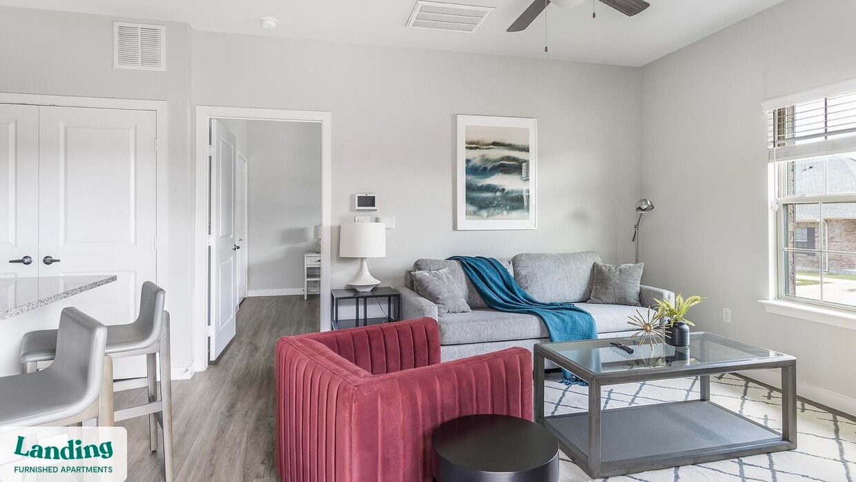 Landing is a top-rated, fully furnished apartment network with thousands of homes across 250+ U.S. cities. With premium amenities, a mobile app to manage your stay, and 24/7 support. Our apartments have everything you need for monthly and longer stays.: 6-Month Minimum base rent: starts at $2138/mo 12-Month Minimum base rent: starts at $1770/mo Landing's apartments at Clark Ridge Canyon are designed for comfortable, easy living, with the ability to stay as long as you like. All Landing apartments include: - Fast Wi-Fi - Stylish furnishings - Fully-stocked bathroom - Smart TVs - Comfortable bed - Professionally cleaned - Guest support Stay longer for cheaper! The longer you stay, the bigger your discount. Price advertised is for a 12-month stay, including all utilities and fees, and may vary based on availability. We manage multiple units at this property. While all feature a similar style and furnishings, the layout and specific design elements may vary slightly from the photos provided. Some of the nitty-gritty: a background check and proof of income are required; we're completely smoke-free; pet-friendly options are available; parking is subject to availability.