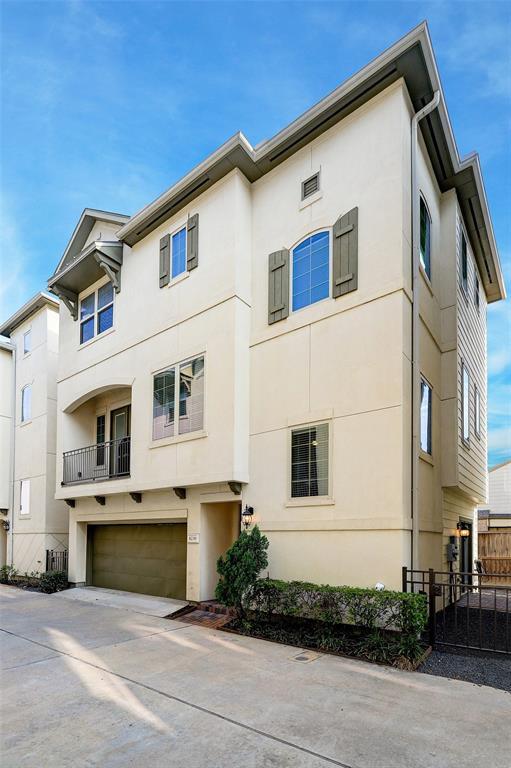 Beautiful and spacious 3-story home in a gated enclave! Freestanding home featuring 3 bedrooms and 3.5 baths plus a two-car garage. Split plan with one bedroom and private bath on the first floor with access to the private yard. 2nd floor boasts an open kitchen, dining and living room, utility room, and powder bath. Hardwood flooring, wood stairs, freshly painted walls, light and bright kitchen with stainless steel appliances, including a built-in wine chiller, this home has a modern crisp feel. The third floor features a nice-sized en suite secondary bedroom and bath. The primary suite includes a master bathroom with walk in shower, soaking tub, double sinks, and a spacious walk in closet. Community grounds are located on property. Minutes away from the Medical Center/NRG/Museum District, Downtown, and major thoroughfares including 610/288/59. A must see!