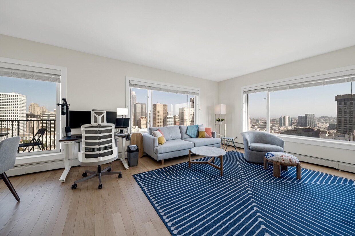 The advertised rate of $6,899/month is the lowest available price, based on a 30 day(s) stay with a move-in date of May 3, 2026. Rates vary depending on the duration of stay, season, and other parameters. For exact pricing and additional pricing components, please visit our website and enter your desired move-in and move-out dates. The rate is applicable when billed upfront; it can be higher if billed in multiple payments. Enjoy upscale living with sweeping views in this 1-bedroom apartment in San Francisco's historic Nob Hill neighborhood. Feel at home in this stylish apartment that offers an open-plan layout. This fully furnished apartment features hardwood flooring, stainless steel appliances, a fully equipped kitchen with a breakfast bar, a full bathroom, carpeted bedrooms, plenty of closet space, a smart TV, and a private balcony. Amenities include laundry facilities on site, a resident lounge, a fitness center, a sauna, and a rooftop lounge with outdoor seating. Paid parking is available upon request, based on availability, and EV vehicle rental and charging are also available. Located in the historic Nob Hill neighborhood, this apartment offers stunning views of the city, hillside, and bay. This unit does not have air conditioning and can reach high temperatures on a sunny day; standing fans are provided in the unit. Internet speeds are not guaranteed and may fluctuate based on your computer model and the router location. A laptop computer is not included in the home office set-up. Includes private high-speed internet, a standing desk (Uplift), an ergonomic work chair (Uplift), a 34-inch ultra-wide monitor (Samsung), a microphone (Blue Yeti), a webcam (Logitech), computer speakers (Bose), an LED streaming light, a green screen, a keyboard (Logitech), a mouse (Logitech), a laptop stand, and a TOTU 16-in-1 Triple Display USB-C 3.1 docking station. [SI]