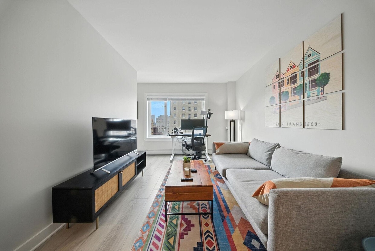 The advertised rate of $5,270/month is the lowest available price, based on a 30 day(s) stay with a move-in date of March 10, 2026. Rates vary depending on the duration of stay, season, and other parameters. For exact pricing and additional pricing components, please visit our website and enter your desired move-in and move-out dates. The rate is applicable when billed upfront; it can be higher if billed in multiple payments. Enjoy upscale living with sweeping views in the historic San Francisco neighborhood of Nob Hill. Feel at home in this fully furnished studio apartment. This apartment offers open-plan, stylish interiors with a contemporary design, featuring hardwood flooring, stainless steel appliances, and plenty of closet space. The unit includes a fully equipped kitchen with a breakfast bar, a full bathroom, a queen-size mattress, a walk-in closet, a smart TV, in-unit laundry, a dishwasher, a resident lounge, a fitness center, a sauna, and a rooftop lounge with outdoor seating. Paid parking is available upon request, based on availability, and EV vehicle rental and charging are also available. Take in the breathtaking, panoramic views from the sunny rooftop lounge, get in a workout at the state-of-the-art fitness center, or unwind in the resident lounge using the high-speed Wi-Fi. Internet speeds are not guaranteed and may fluctuate based on your computer model and the router location. A laptop computer is not included in the home office set-up. This unit does not have air conditioning and can reach high temperatures on a sunny day; standing fans are provided in the unit. Includes private high-speed internet, a standing desk (Uplift), an ergonomic work chair (Uplift), a 34-inch ultra-wide monitor (Samsung), a microphone (Blue Yeti), a webcam (Logitech), computer speakers (Bose), an LED streaming light, a green screen, a keyboard (Logitech), a mouse (Logitech), a laptop stand and a TOTU 16-in-1 Triple Display USB-C 3.1 docking station. [SI]