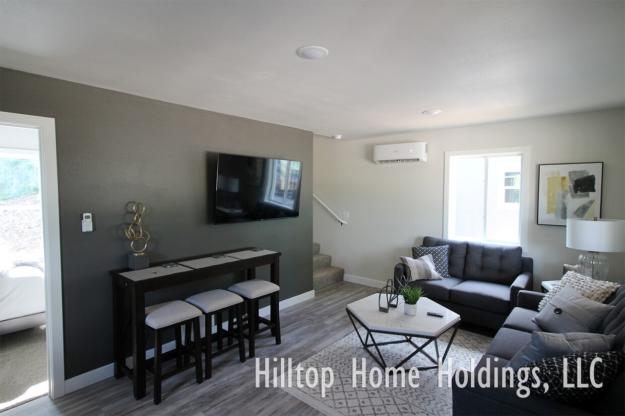 Pet-friendly 2 Bedroom Cute, cozy, energy-efficient house with one bedroom and a full bath upstairs, and one bedroom down. The kitchen comes equipped with a refrigerator, stove, microwave, and a dishwasher; the washer/dryer hook-up is conveniently located upstairs. A washer/dryer set is available for rent for $65/month. For this unit, Hilltop provides lawn care and trash service; tenant is responsible for water service through the City of Eldon and electricity through Ameren Missouri. We are pet friendly! Pet rent is $25/month per animal, with a maximum of two pets. Interested? Your first step is for each adult (18 and older) to submit a FREE screening application at . A $40 fee that covers ID/bank/pay verification, background/credit check, and pet verification will be required of each adult applicant later in the process if you are qualified and interested in pursuing a lease. We do not do showings until we have done the initial screening of each applicant. We do annual leases, but we do not take a traditional security deposit, instead we use deposit insurance (coverage). In particular, we use lease and security deposit coverage, which is a lower-cost alternative to paying a security deposit to get into a rental. Instead of paying a deposit, you're purchasing an insurance plan that can help cover damages and non-payment of rent. This unit is NOT furnished. These photos are of a neighboring unit and show how furniture might be arranged.
